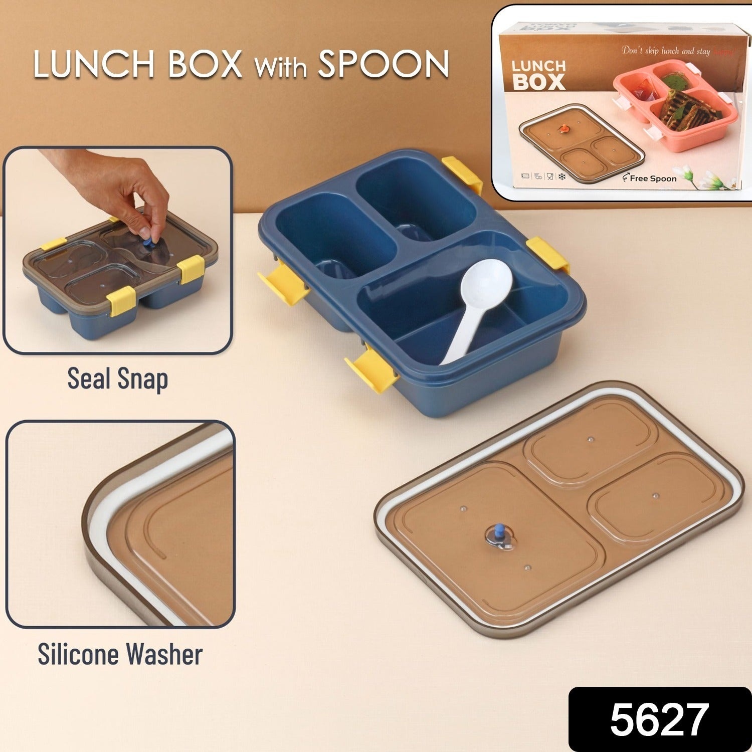 5627 Plastic Lunch Box for Kids, Lunch Box for Kids 3 Compartment Insulated Lunch Box Tiffin Box for Boys, Girls, School & Office Men (3 Compartment Lunch Box)