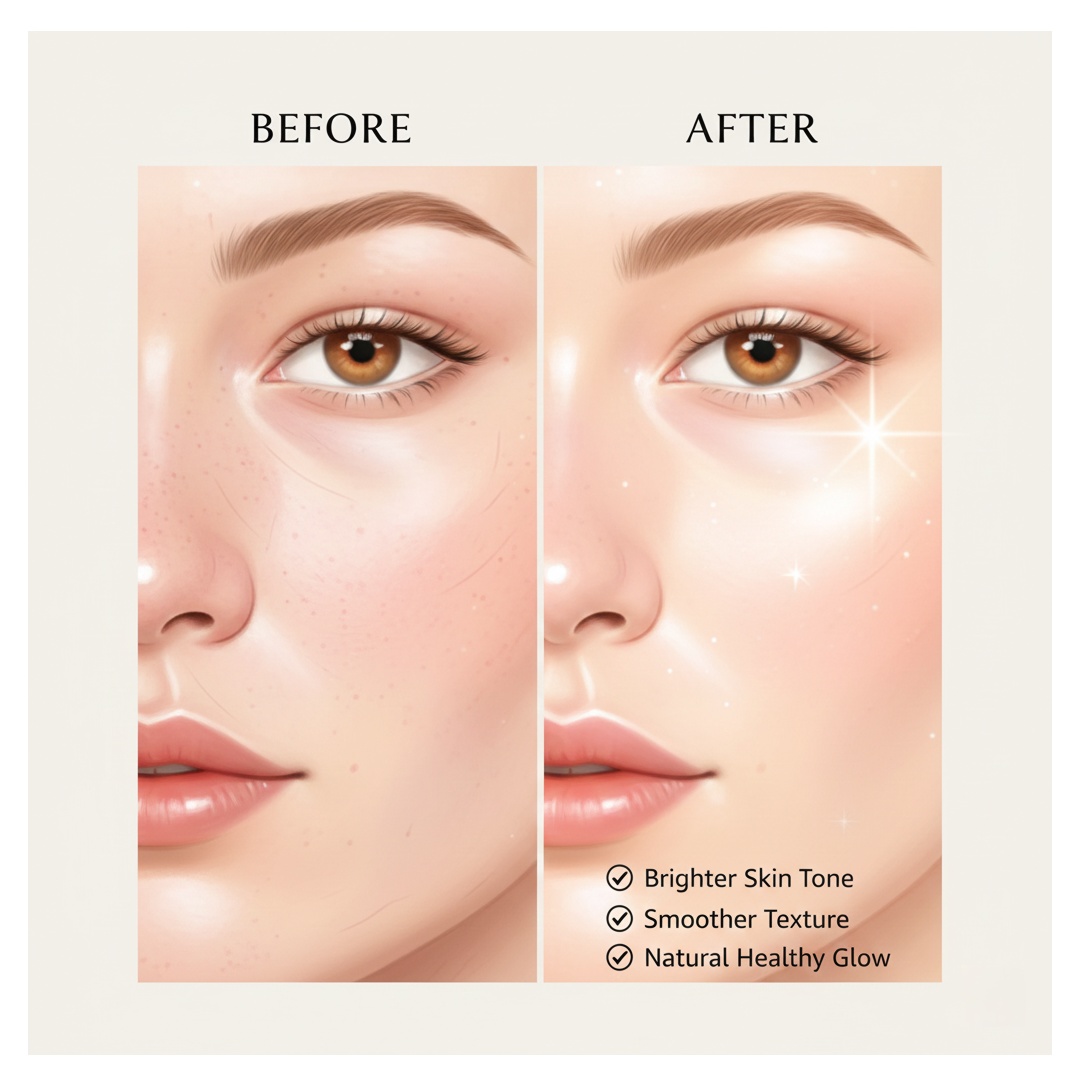 For best result, apply fat solution of vitamin C, collagen or hyaluronic acid cream, essential oil or your preferred facial cosmetics.