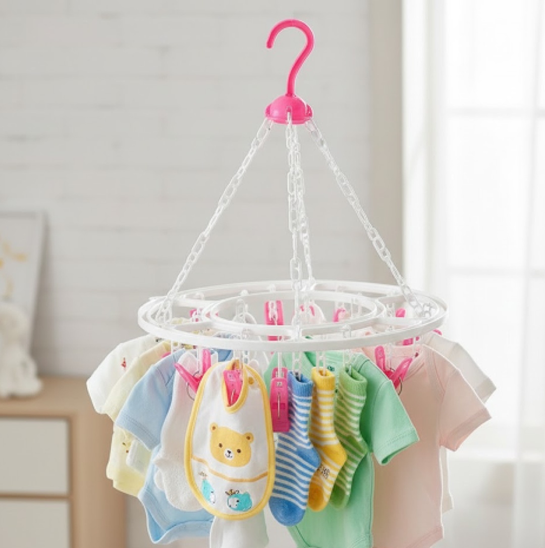 Our clothespin rack with 24 clips is suitable for hanging socks, towels, under wear, scarves, handkerchiefs and baby clothes. It can be hung in the laundry room, closet, window, shower curtain rod, clothes drying rod, etc. It’s a good co-worker for housewives.