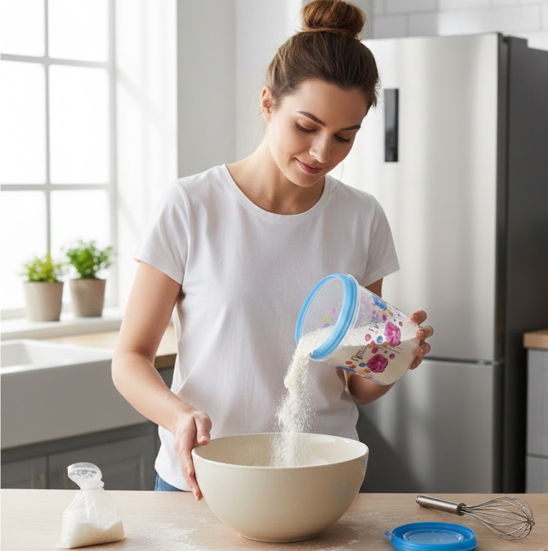 These containers are suitable for cereal, snacks, flour, nuts, sugar, coffee, tea, dry pet food, or any other things you may need to store!
