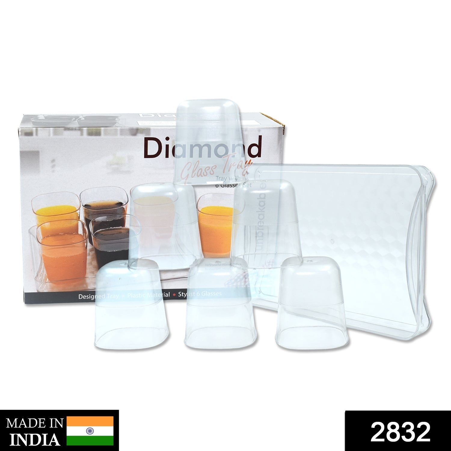 2832 6pc Glasses Set With tray Stylish Transparent Water Glass/Juice Glass/Beer Glass/Wine Glass Plastic Glass Set