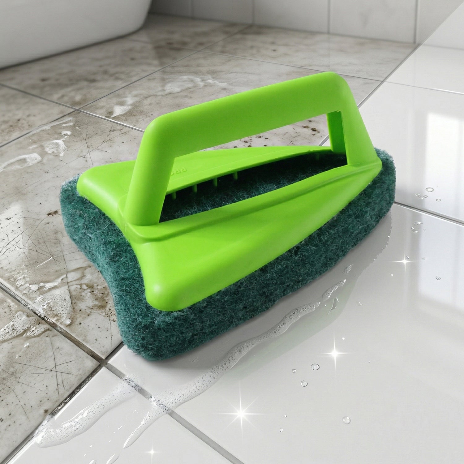 Bathroom Brush with abrasive scrubber for superior tile cleaning
