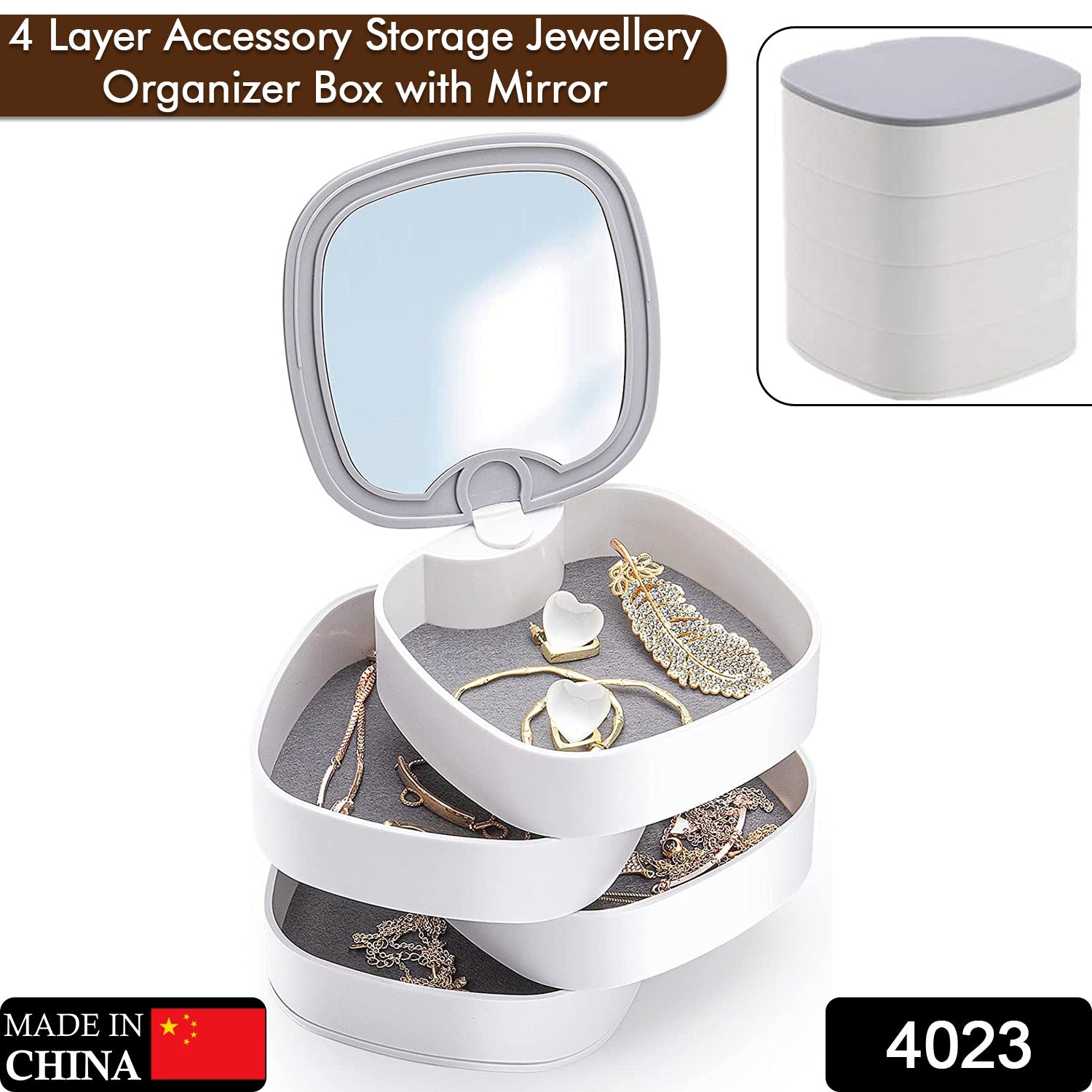 4023 4 Layers Jewellery Box, 360 Degree Rotating Jewelry Box, Jewelry and Earring Organizer Box with Mirror, Accessory Storage Box (Multicolor)