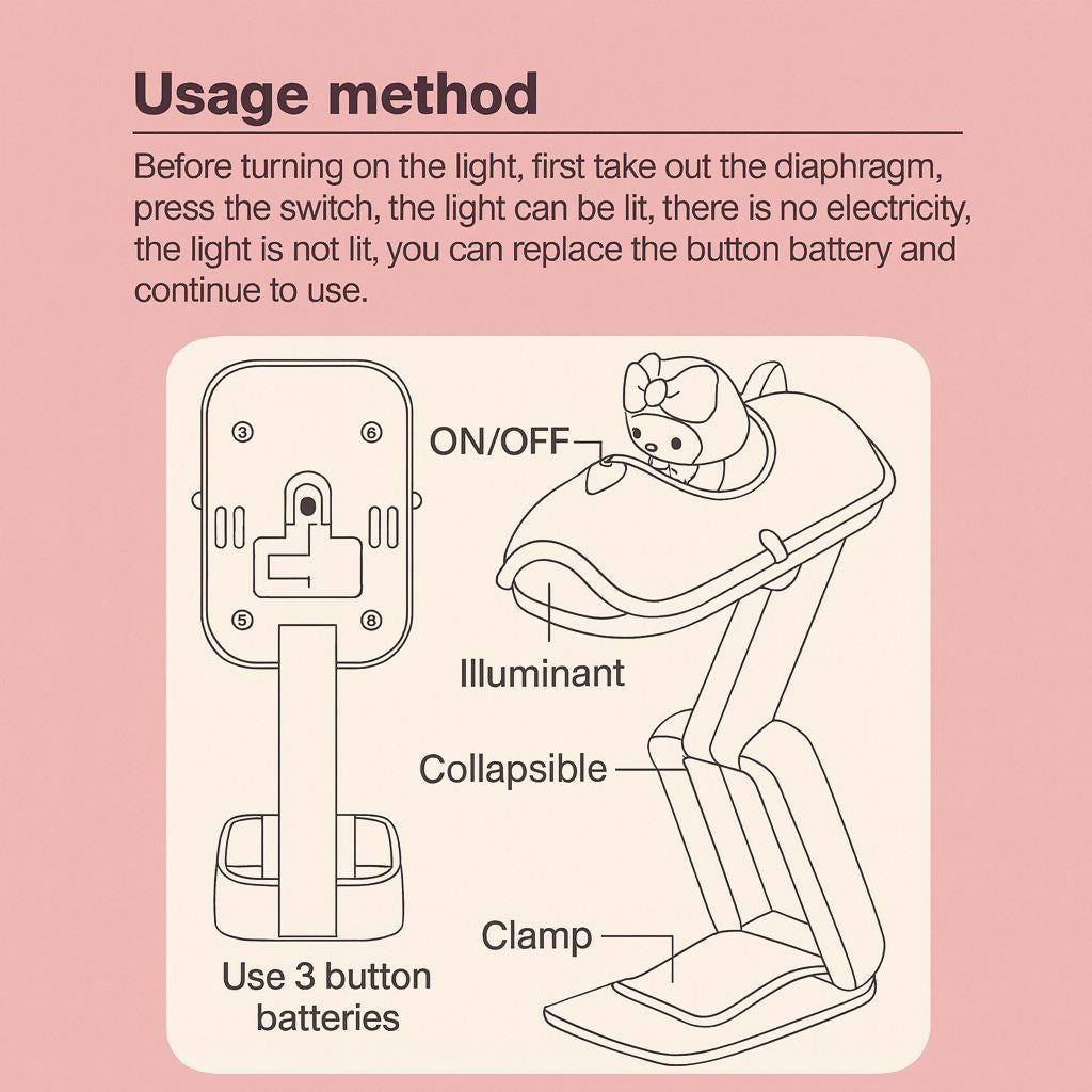 Make bedtime and study time more fun with this adorable mini folding LED night light. Designed in a cute car shape with a cartoon figure, this compact lamp provides a soft glow suitable for reading, night use, or desk lighting. The foldable arm allows easy angle adjustment, while the sturdy clamp-style base keeps it stable on tables and study desks. Lightweight and portable, it runs on button batteries and is perfect for kids’ rooms, bedside tables, travel, or gifting.