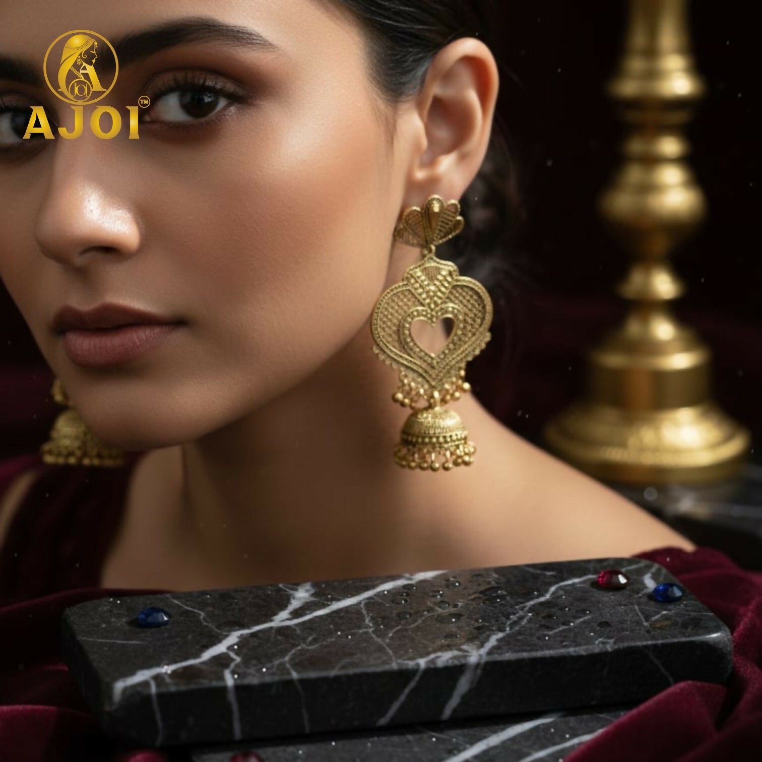 Be the first to review “Premium Antique Heart Jhumka Earrings with Traditional Gold-Tone Detailing” Cancel reply