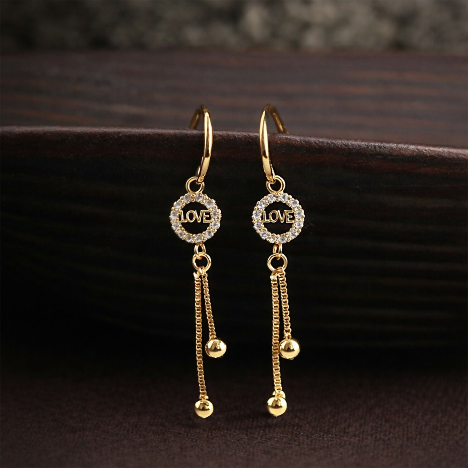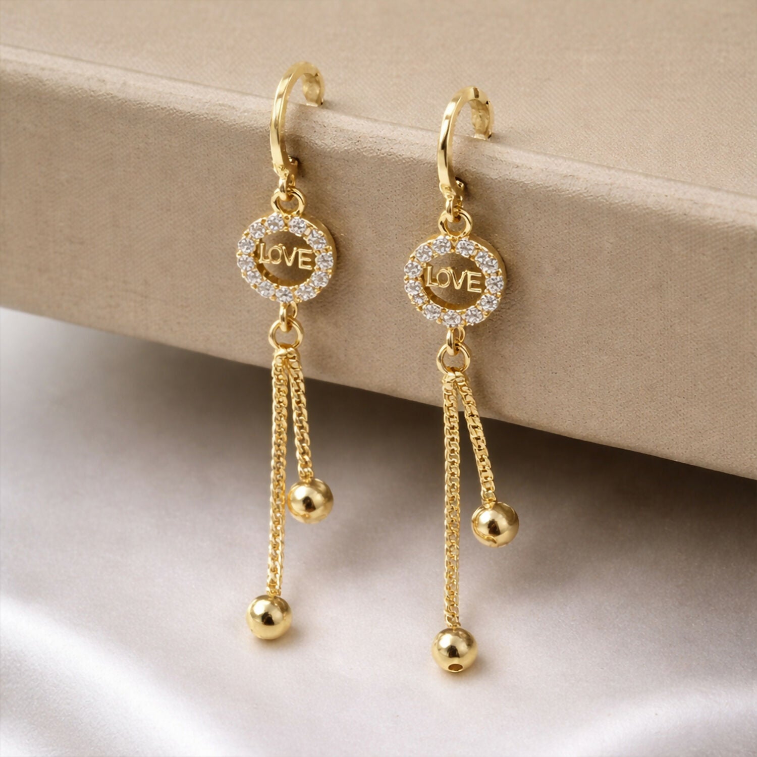 Be the first to review “Romantic “LOVE” Charm Tassel Drop Earrings in Gold Finish” Cancel reply