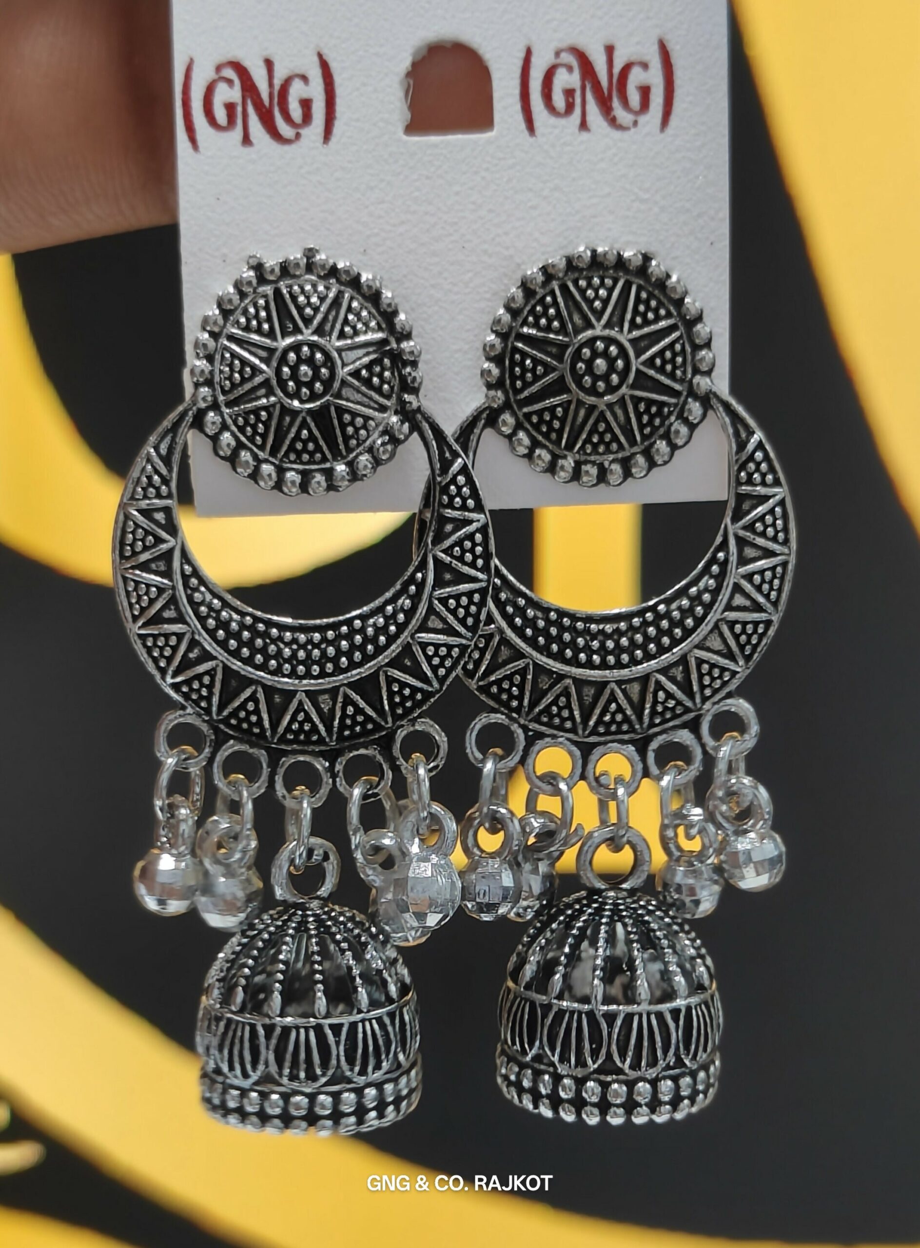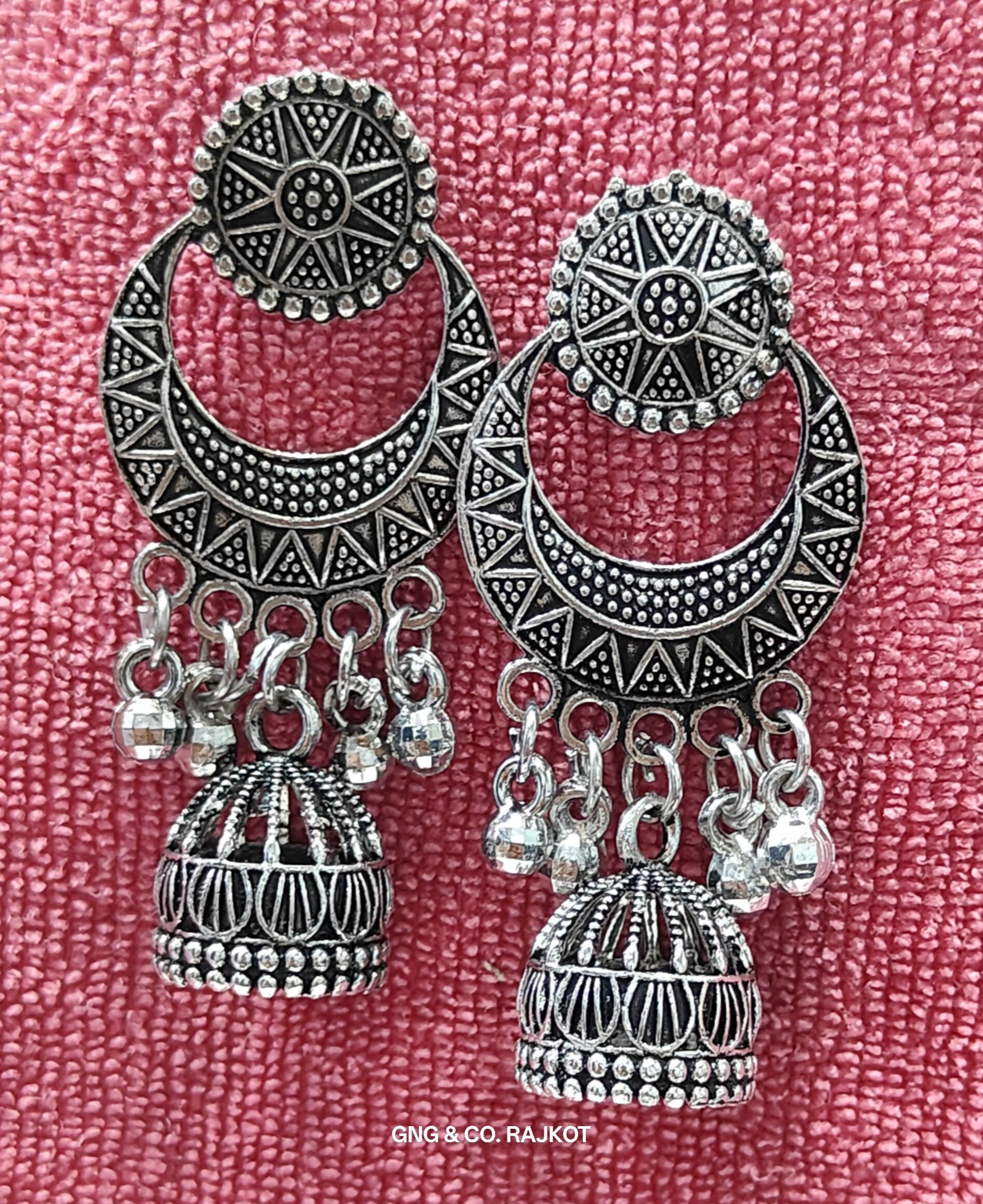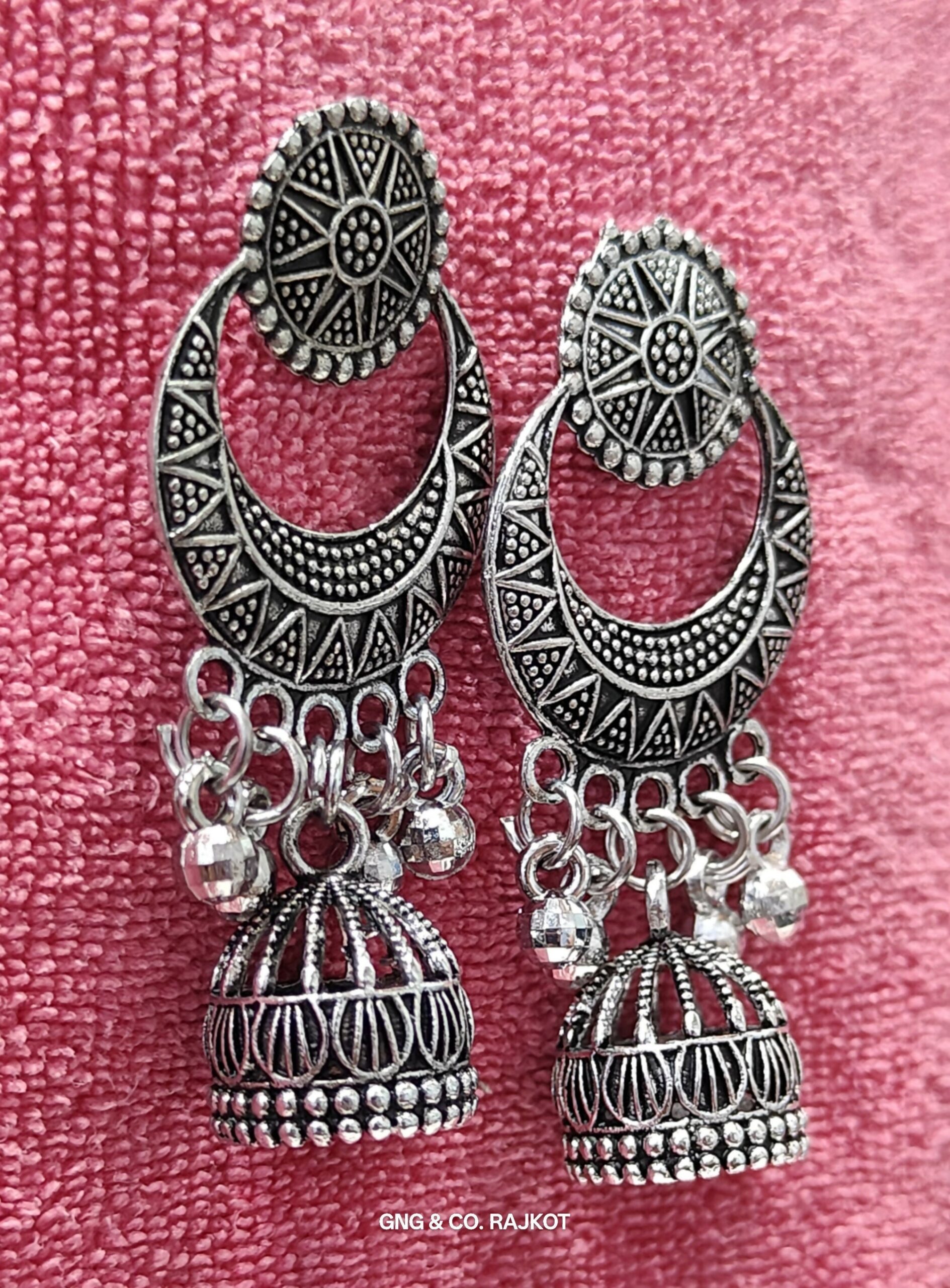 Elegant and timeless, these Silver Earrings are crafted with fine oxidised detailing and a traditional touch. Their versatile design makes them perfect for both daily wear and special occasions. Lightweight, stylish, and skin-friendly—these earrings are a must-have in every jewelry collection.