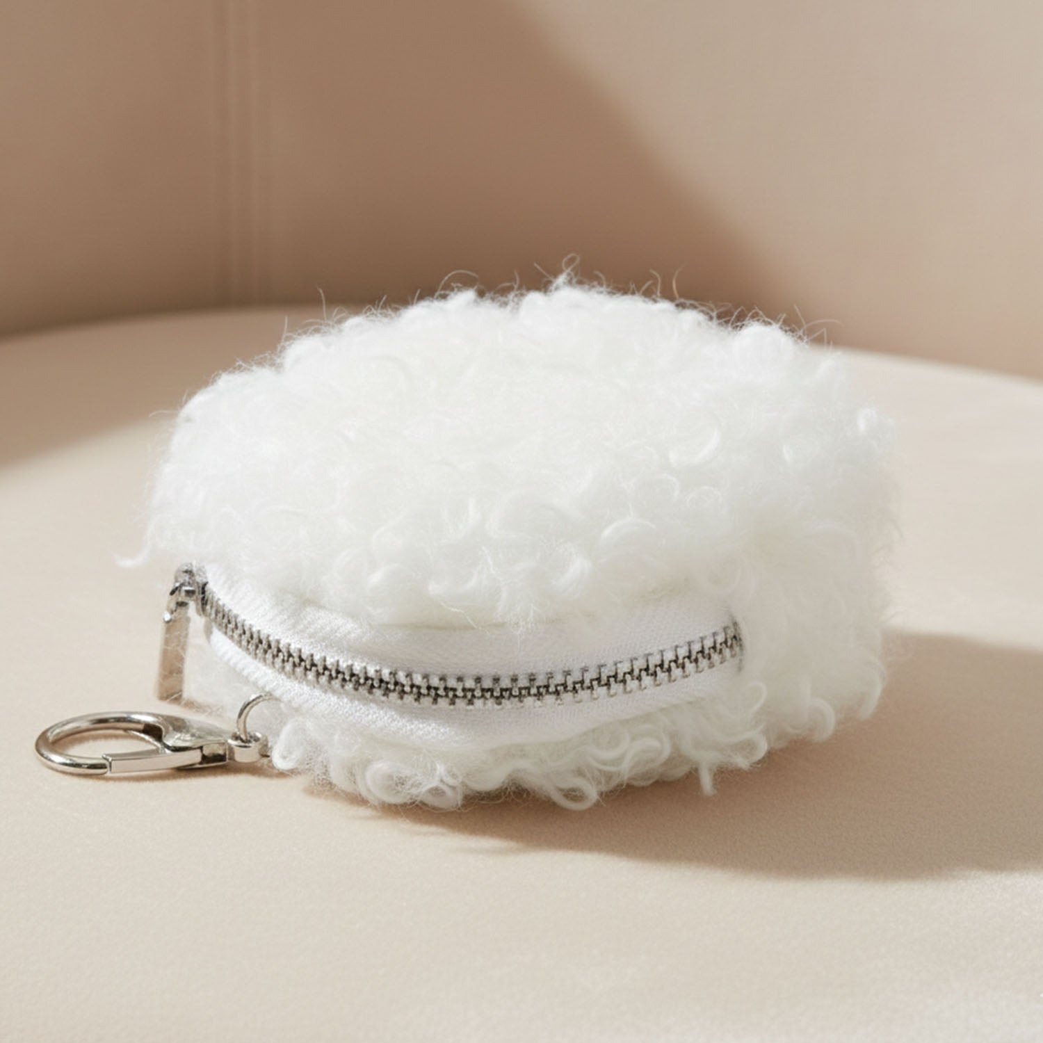 Add a touch of softness and style to your daily essentials with this fluffy mini coin purse designed for convenient storage and easy portability. Featuring a smooth zipper closure and a sturdy keychain hook, this compact round pouch is perfect for carrying coins, folded cash, earphones, lip balm, and other small accessories. The soft faux fur exterior gives it a trendy and premium look, while the lightweight design makes it easy to carry inside handbags or attach to your purse. Ideal for daily use, travel, or gifting, this mini pouch helps keep small items organized and easily accessible. Its compact structure ensures practicality without adding bulk to your bag. A stylish and functional accessory for everyday convenience.