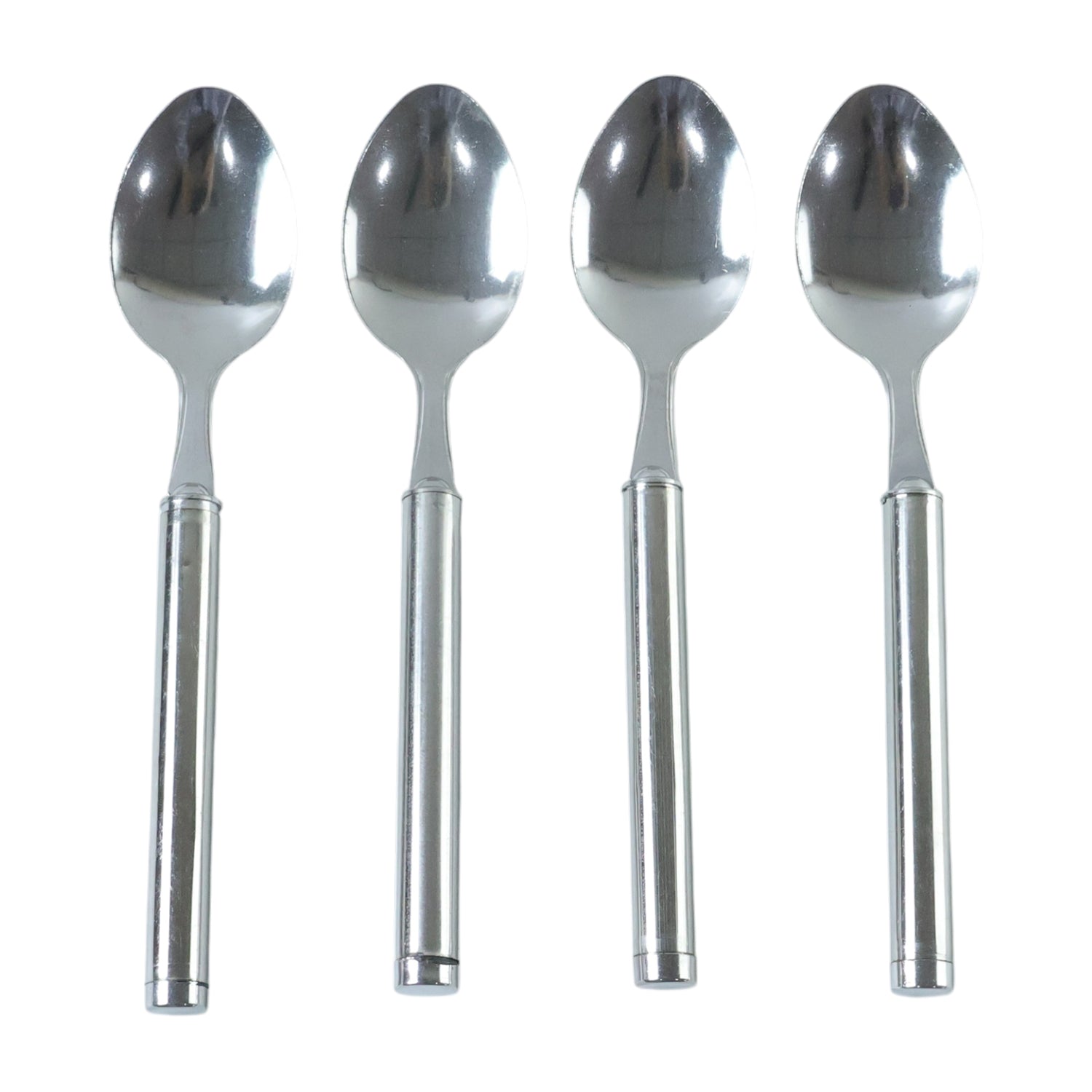 Upgrade your everyday dining essentials with this 4 pieces stainless steel dinner spoon set designed for durability and comfort. Crafted from high quality stainless steel, these table spoons feature a sleek silver finish that complements any dining setup. The sturdy handle design ensures a comfortable grip while eating meals, desserts or snacks. Ideal for regular home use as well as serving guests, these spoons are strong, reusable and easy to maintain. Their simple and modern design makes them suitable for both casual and formal table settings.