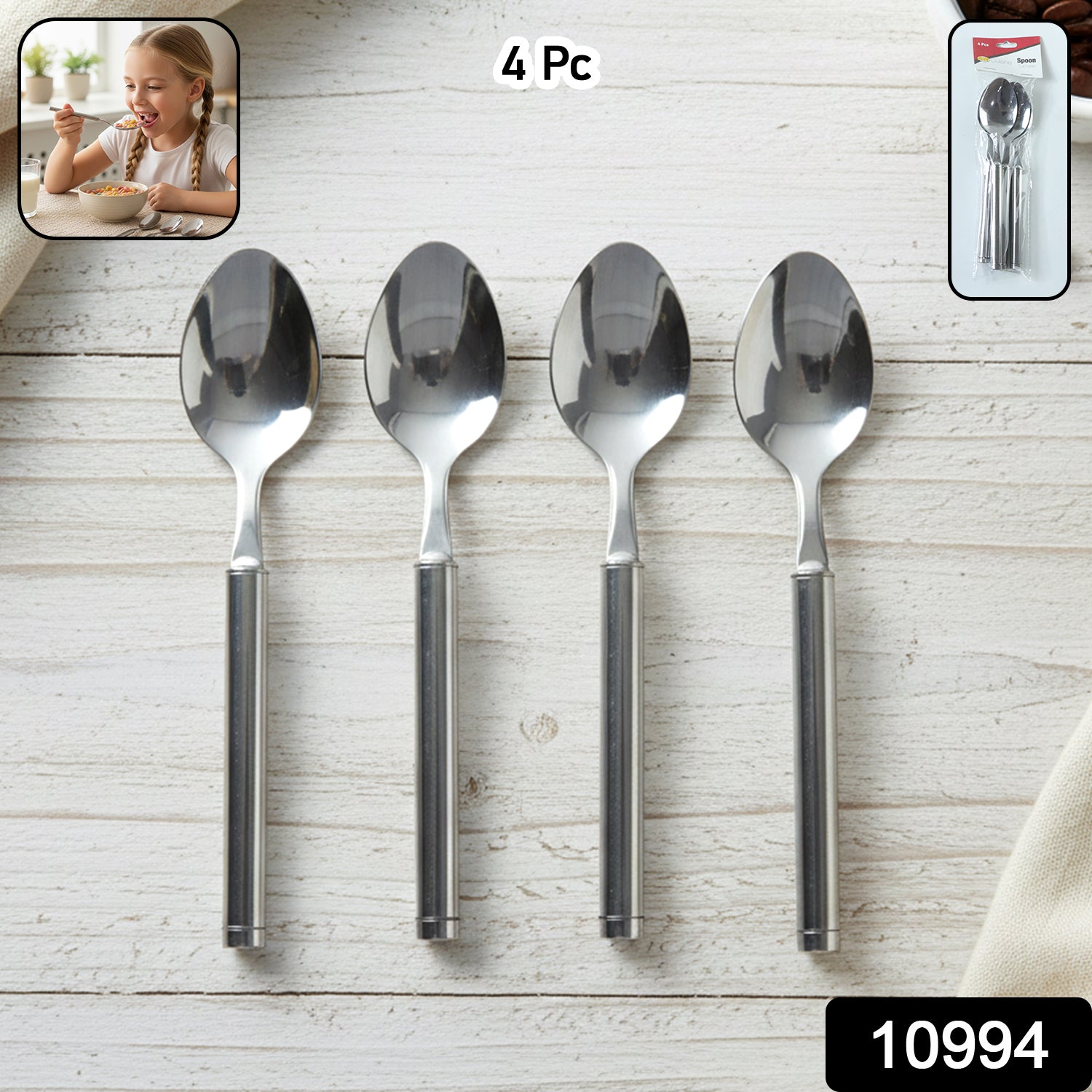 Stainless Steel Dinner Spoon Set – Heavy Duty Silver Finish Table Spoons for Home, Kitchen and Dining Use (4 Pc Set)