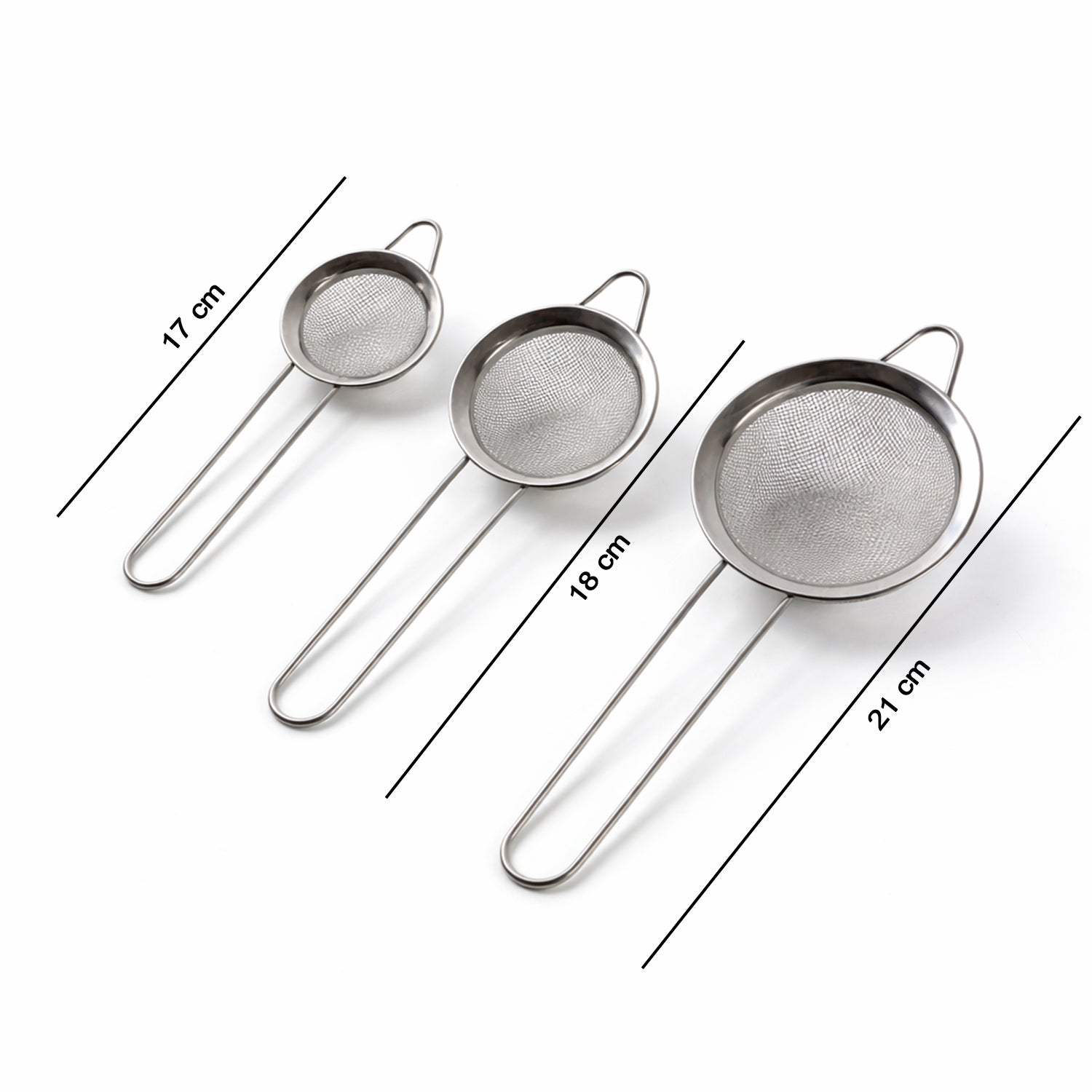 Enjoy a smooth and residue free cup of tea every time with this stainless steel tea strainer 3 piece set. Designed with fine mesh bowls and long sturdy handles, these strainers effectively filter tea leaves, herbs and coffee grounds for a clean and refreshing drink. The durable stainless steel construction ensures long lasting performance and resistance to rust. Lightweight and easy to hold, the long handles provide safe and convenient use over cups and mugs. Ideal for daily kitchen use, this set is a practical addition to every tea and coffee lover’s collection.