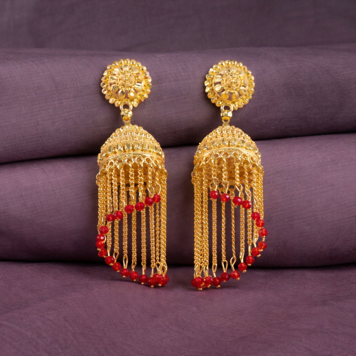 These statement earrings are perfect for weddings, festive celebrations, cultural events, and party wear. The flowing tassel design gives a stylish and eye-catching look while maintaining a traditional aesthetic. Ideal for pairing with sarees, lehengas, and other ethnic outfits, these earrings add elegance and charm to any special occasion.
