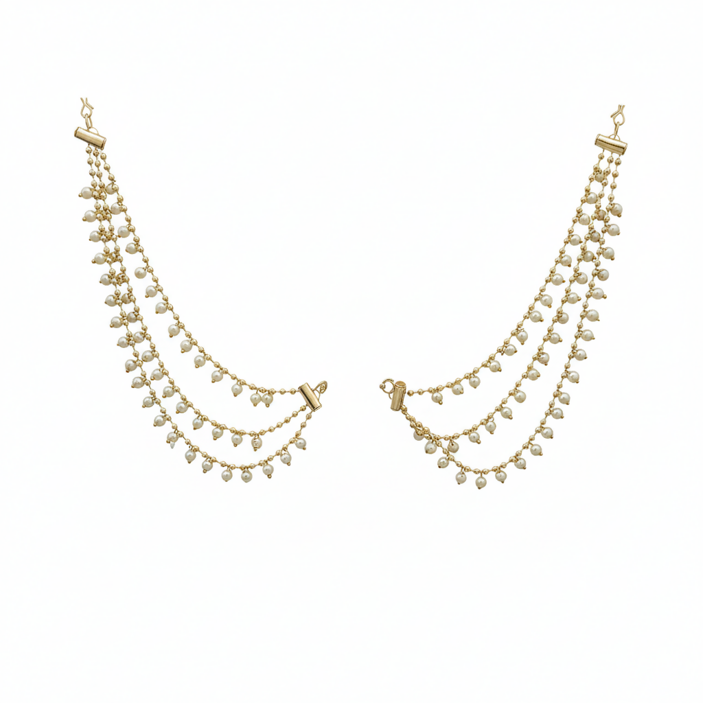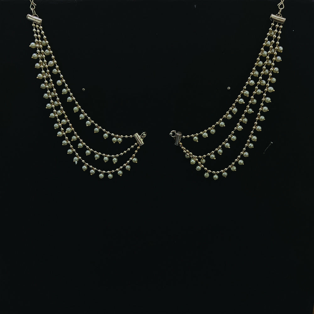 Add a touch of timeless elegance to your traditional jewellery with this Traditional White Pearl Kaan Chain. Crafted with lustrous white pearls and a classic design, it provides both beauty and support to heavy earrings. Perfect for weddings, festive occasions, and ethnic wear styling.