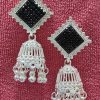 Add a touch of elegance and bold charm to your look with these stunning White Gold Square Tops. Designed with a sleek square-shaped top, accented by a striking black stone, these earrings flow gracefully into a classic jhumka drop. The glossy white gold polish adds a modern shine, while the intricate jhumka design brings in a timeless ethnic appeal. Perfect for festive occasions, parties, or statement wear.