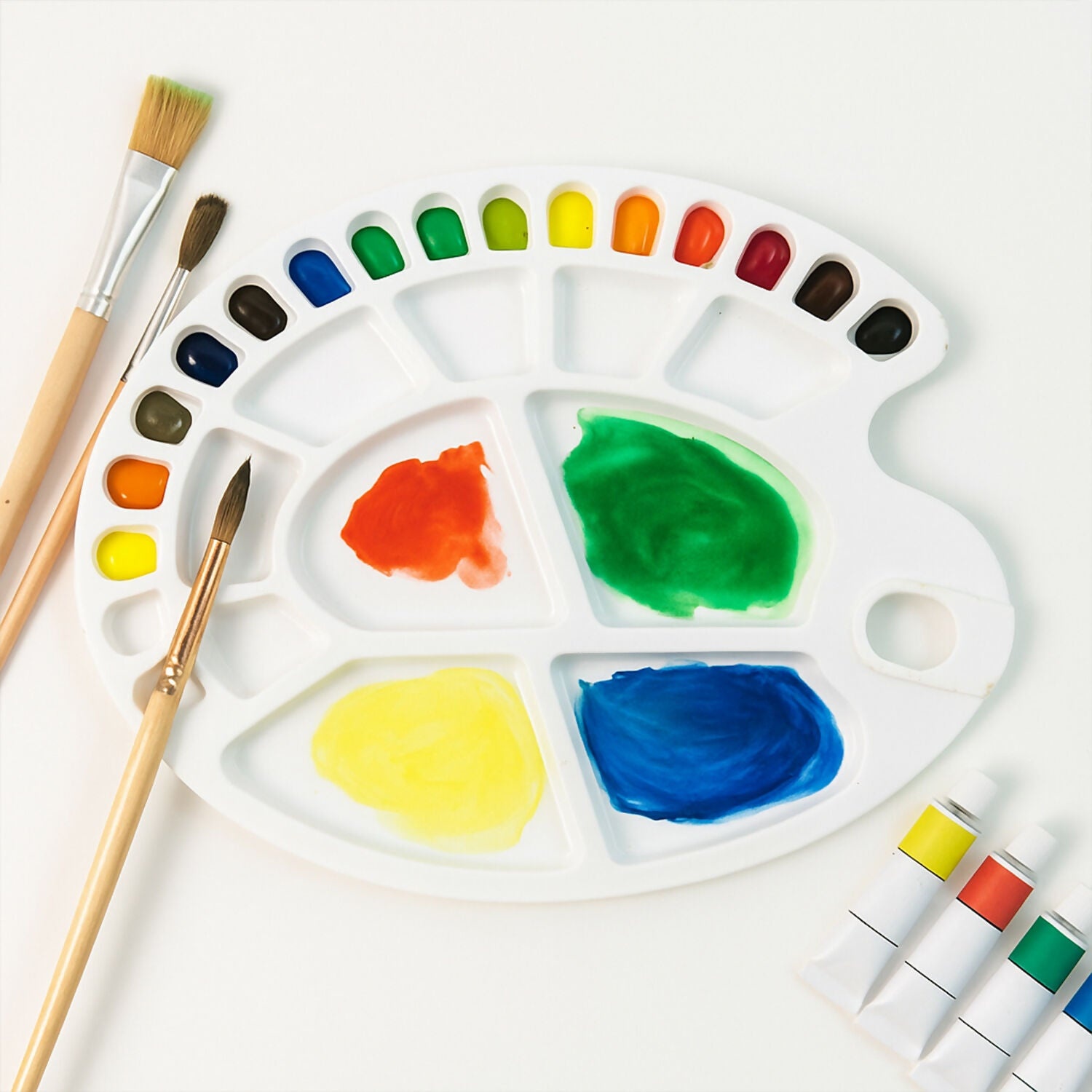 The Khyati Colour Mixing Plate is a must-have tool for artists, students, and creative professionals. Designed in an ergonomic oval shape, this large paint palette offers multiple wells for blending and mixing colours with ease. Its lightweight and smooth-surface design makes it convenient for both beginners and experienced painters. The palette includes a comfortable thumb hole for easy handling during painting sessions and is ideal for use with watercolours, acrylics, gouache, and poster paints. Durable and easy to clean, this mixing plate ensures effortless colour experimentation and artistic flow.