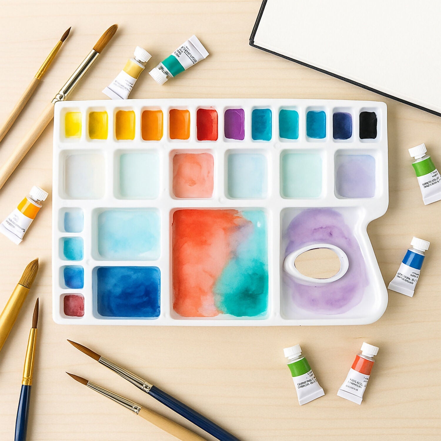 Khyati Colour Mixing Plate – Rectangle Big Artist Palette with Multiple Deep Wells
