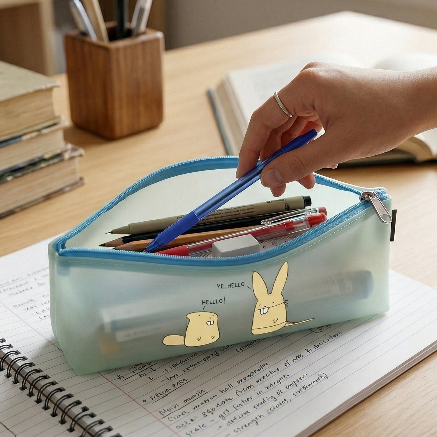 Cute Cartoon Transparent Pencil Pouch (1 Pc)
