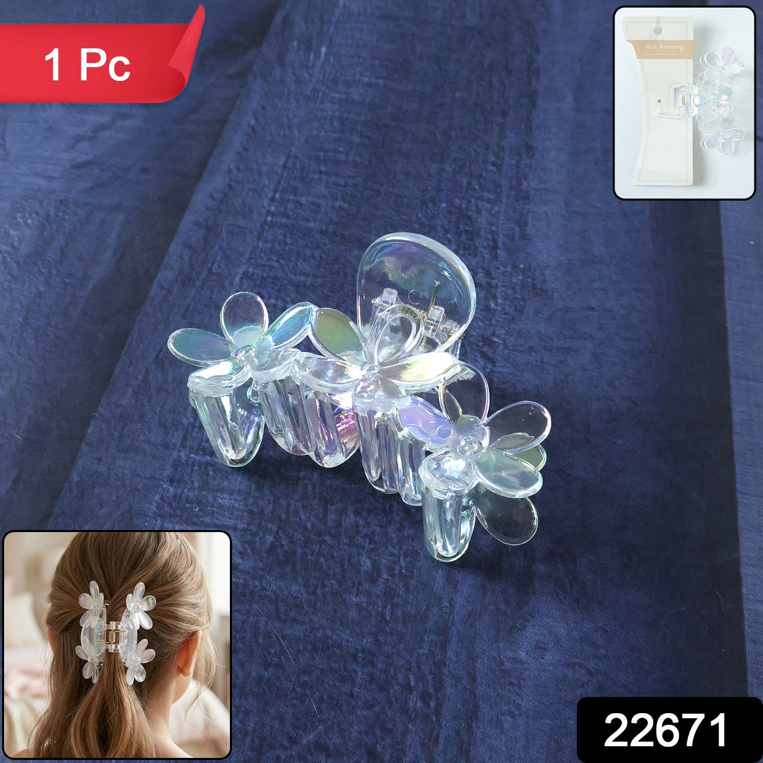 Elegant Transparent Floral Hair Claw Clip (1 Pc)