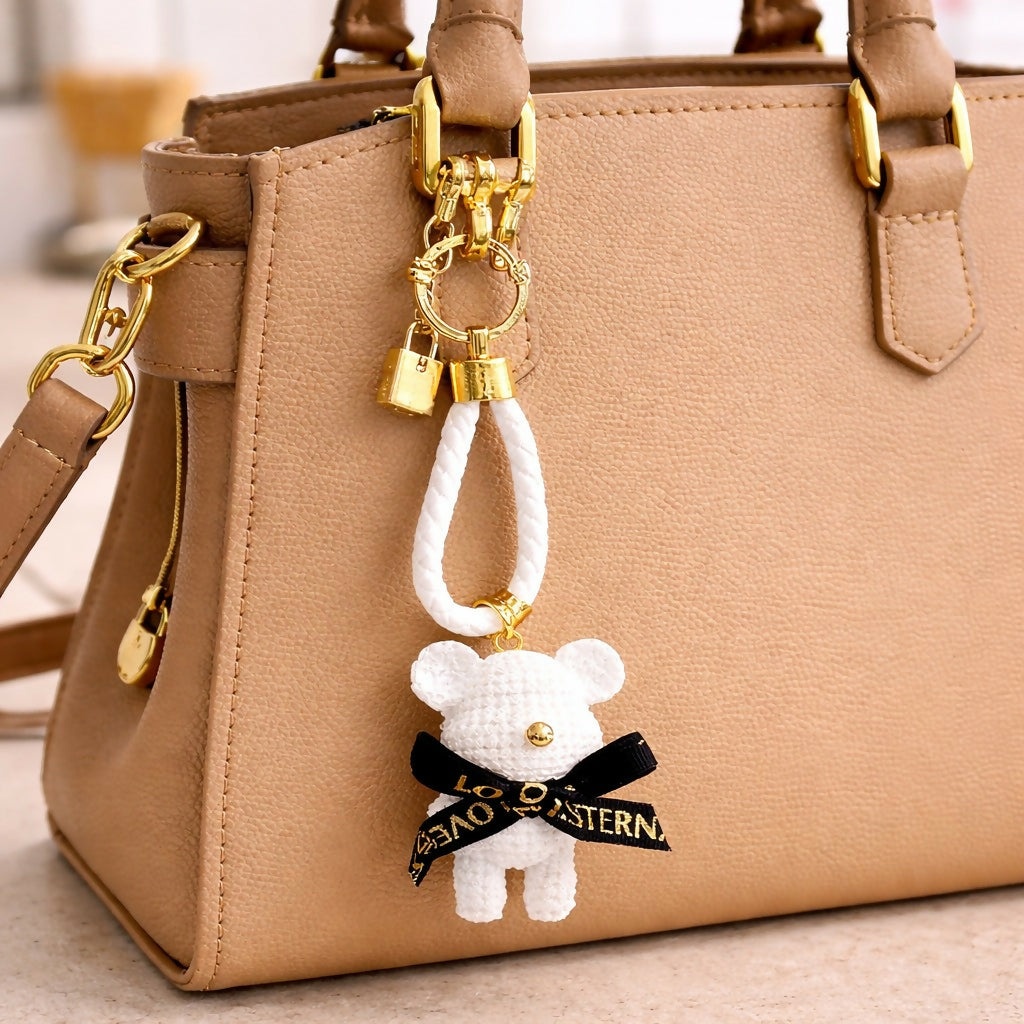 bear keychain, cute keychain, bag charm, key holder, decorative keychain, handbag accessory, backpack charm, car keychain, gift item, stylish keychain, mini keychain, trendy keychain