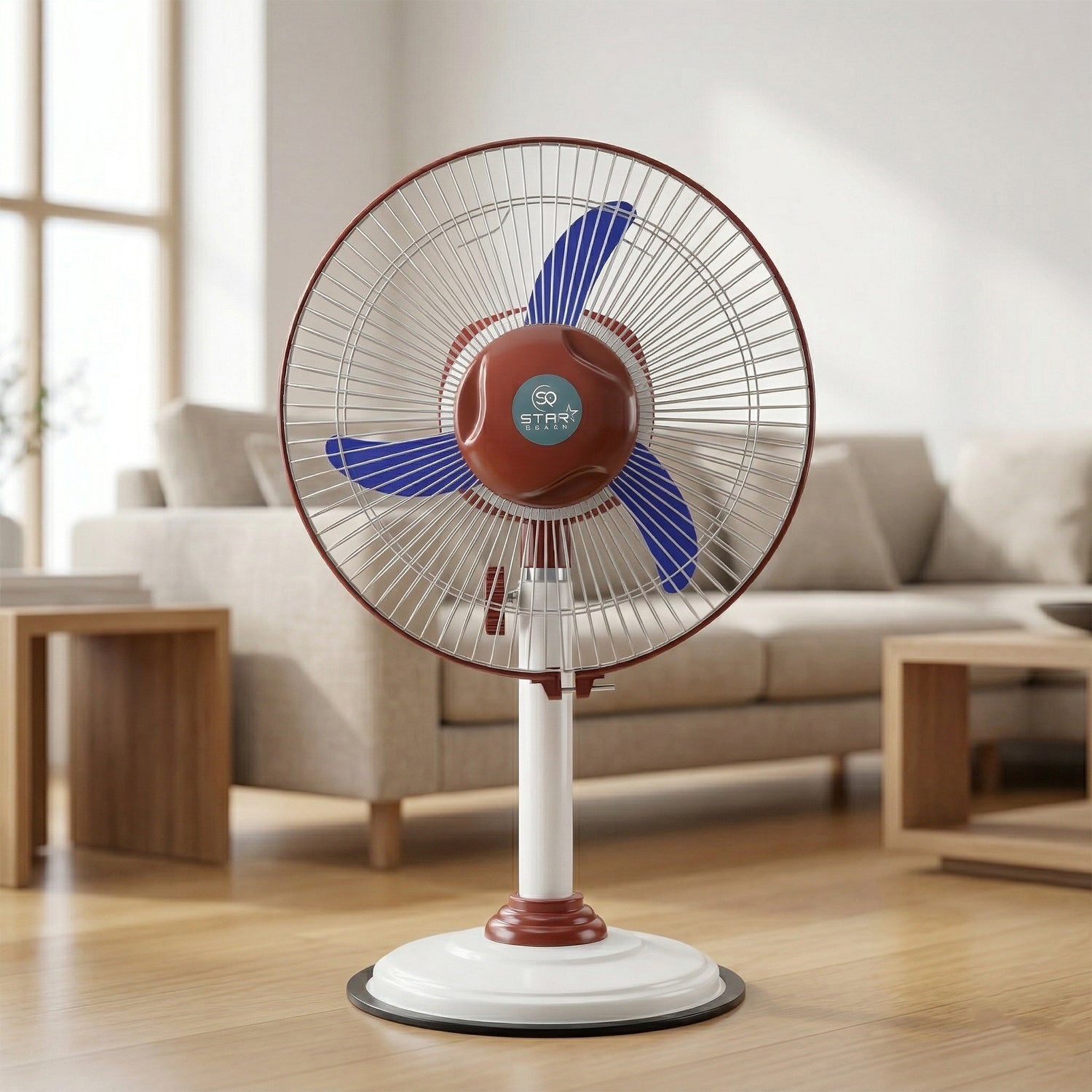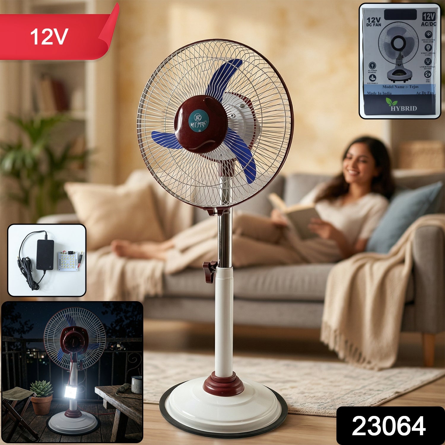 Experience powerful cooling with this 12V rechargeable pedestal fan designed for both comfort and convenience. Featuring dual power functionality, this fan operates on both AC and DC, making it ideal for daily use as well as power outages. The adjustable height and wide air circulation ensure effective cooling across the room, while the built-in LED light provides additional support during low-light or emergency situations. Its sturdy base and portable design make it perfect for home, office, and outdoor environments.
