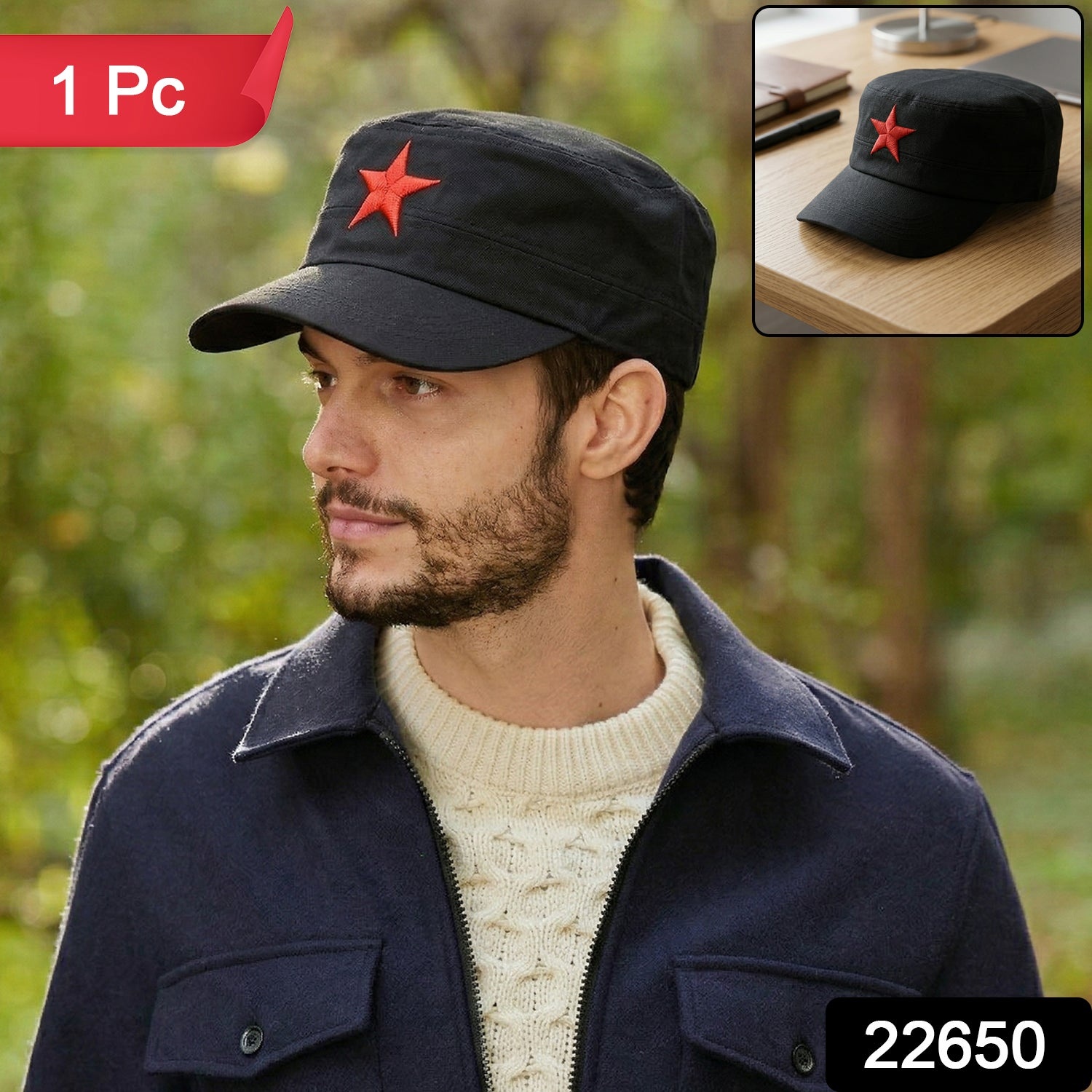 Give your outfit a bold and unique touch with this classic military-style cap featuring a striking star design. Designed with a flat top structure and a comfortable fit, this cap combines style and functionality for everyday wear. The sturdy build and breathable fabric make it suitable for long hours of use without discomfort. Whether you're heading outdoors, traveling, or simply adding a fashionable edge to your look, this cap delivers both comfort and style. A perfect accessory for those who prefer a distinctive and confident appearance.