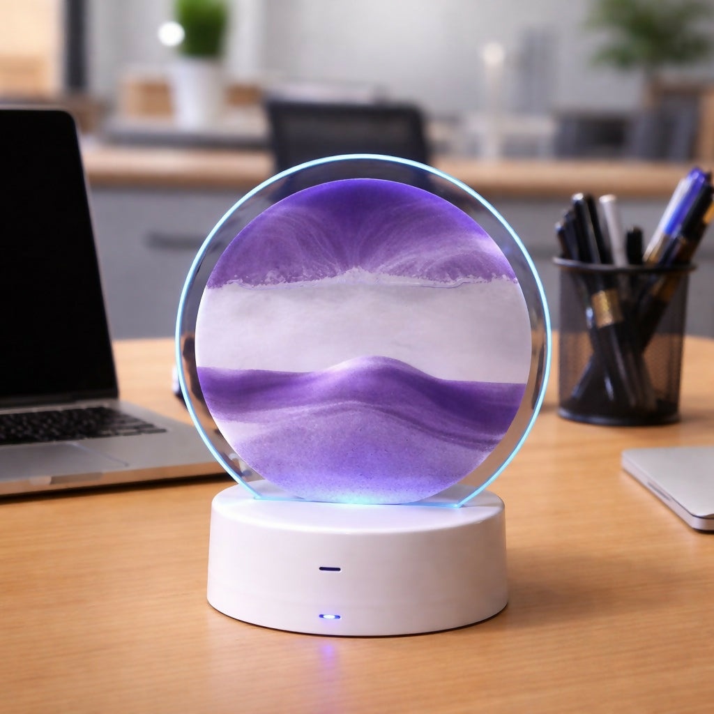 sand art lamp, moving sand lamp, LED decorative lamp, flowing sand art, ambient light lamp, desk lamp décor, relaxing lamp, bedside night light, modern home décor, office table lamp, unique gift lamp