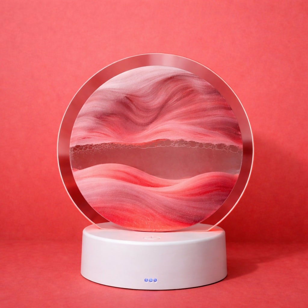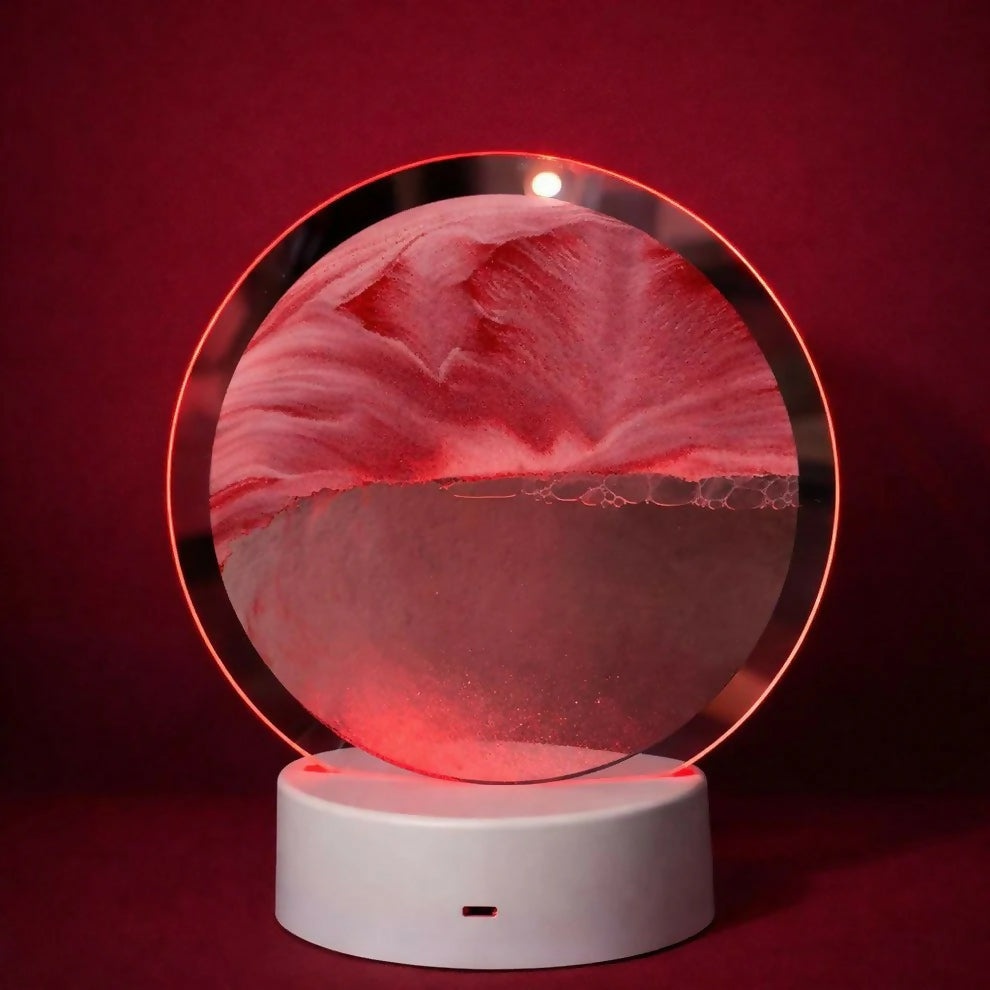 Red Sand Round LED Acrylic Table Lamp with Abstract Art Design