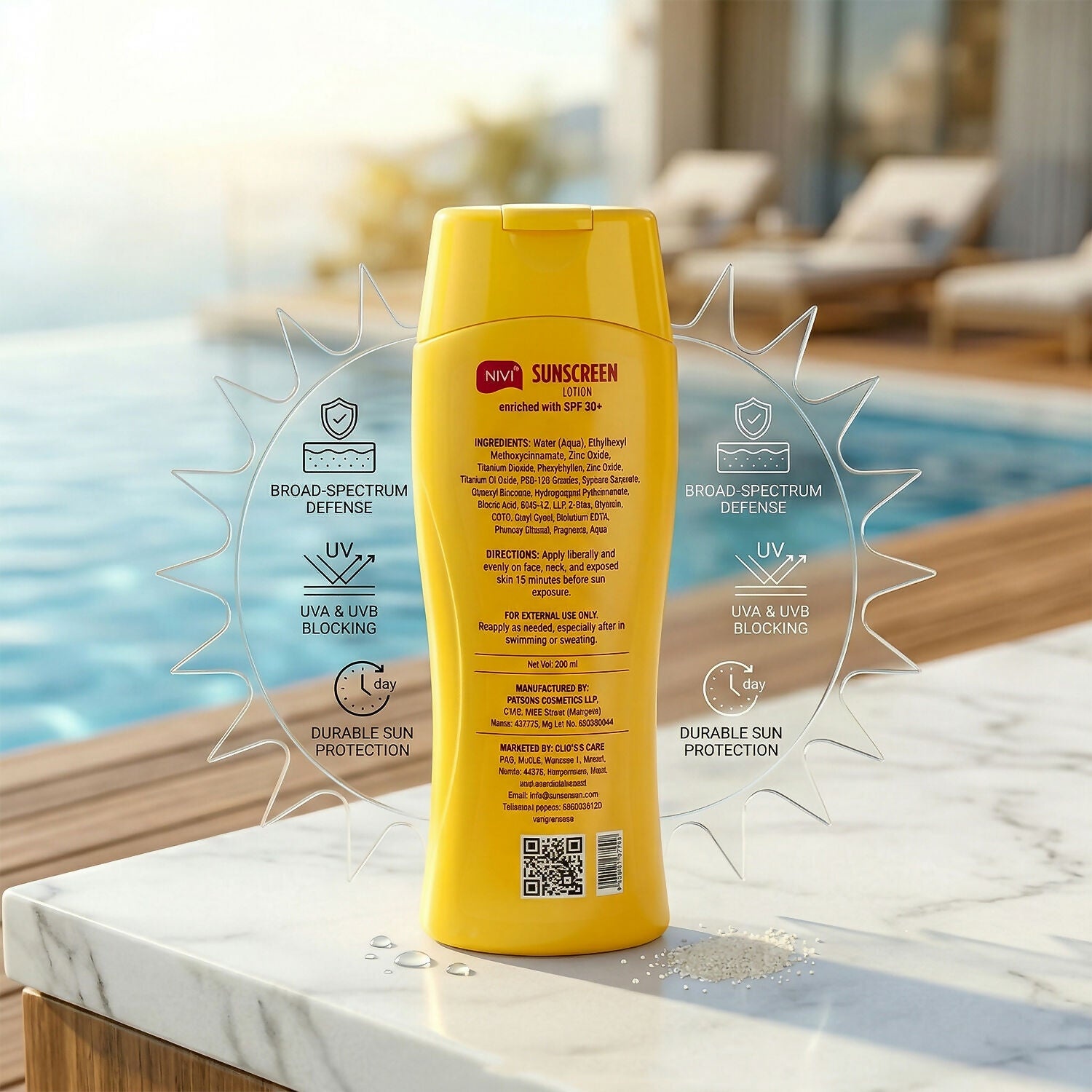 Nivi Sunscreen Lotion SPF 30 UVA UVB Protection Daily Skin Care (200 Ml)
