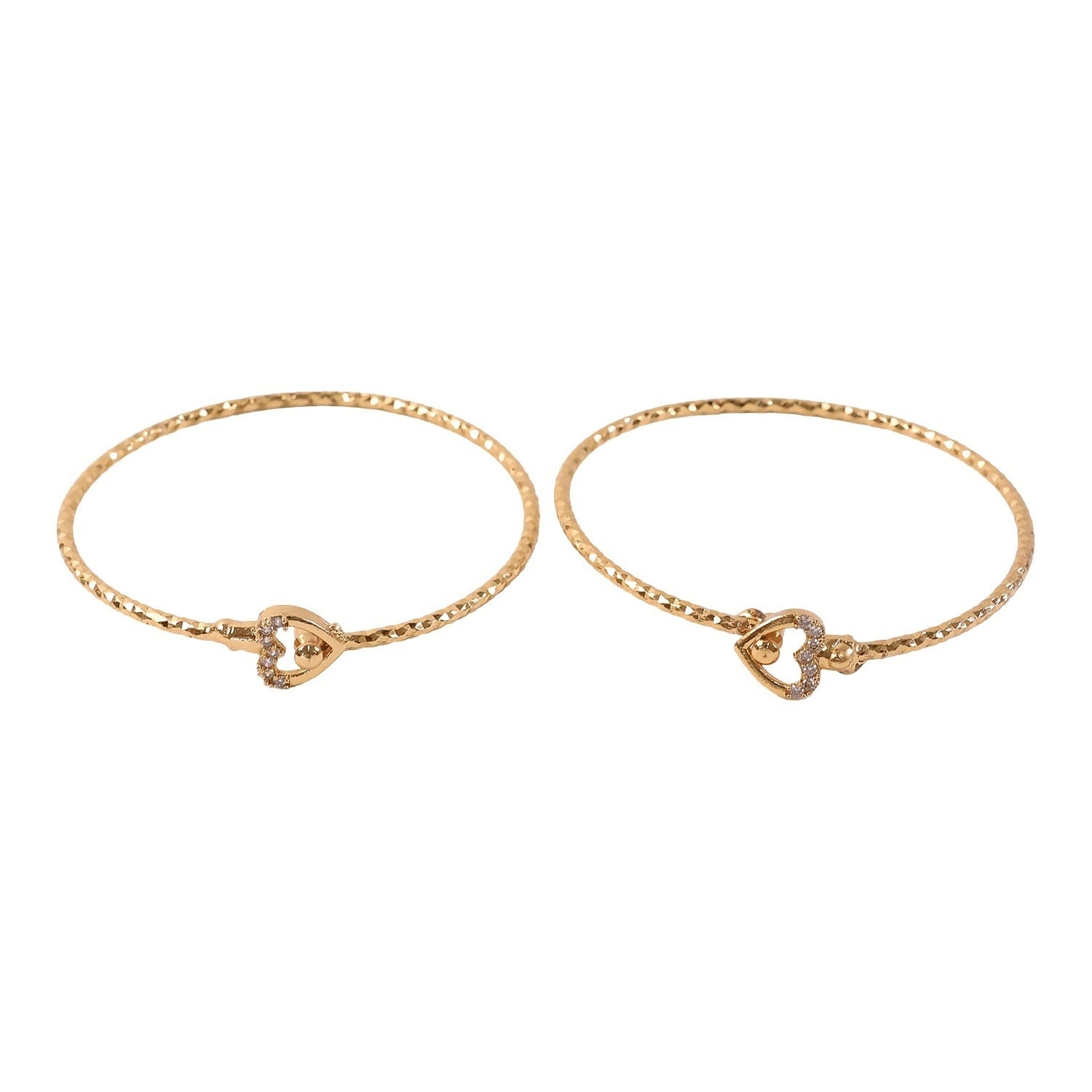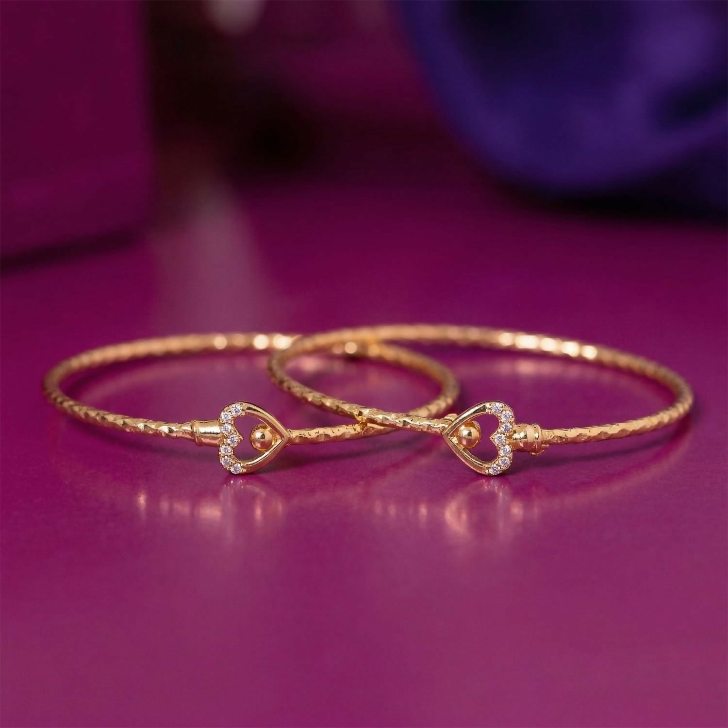 Add a touch of elegance to your jewelry collection with these beautifully crafted gold heart lock bangles. Designed with a delicate textured finish, each bangle features a charming heart-shaped lock accent adorned with sparkling stones, symbolizing love and style.
