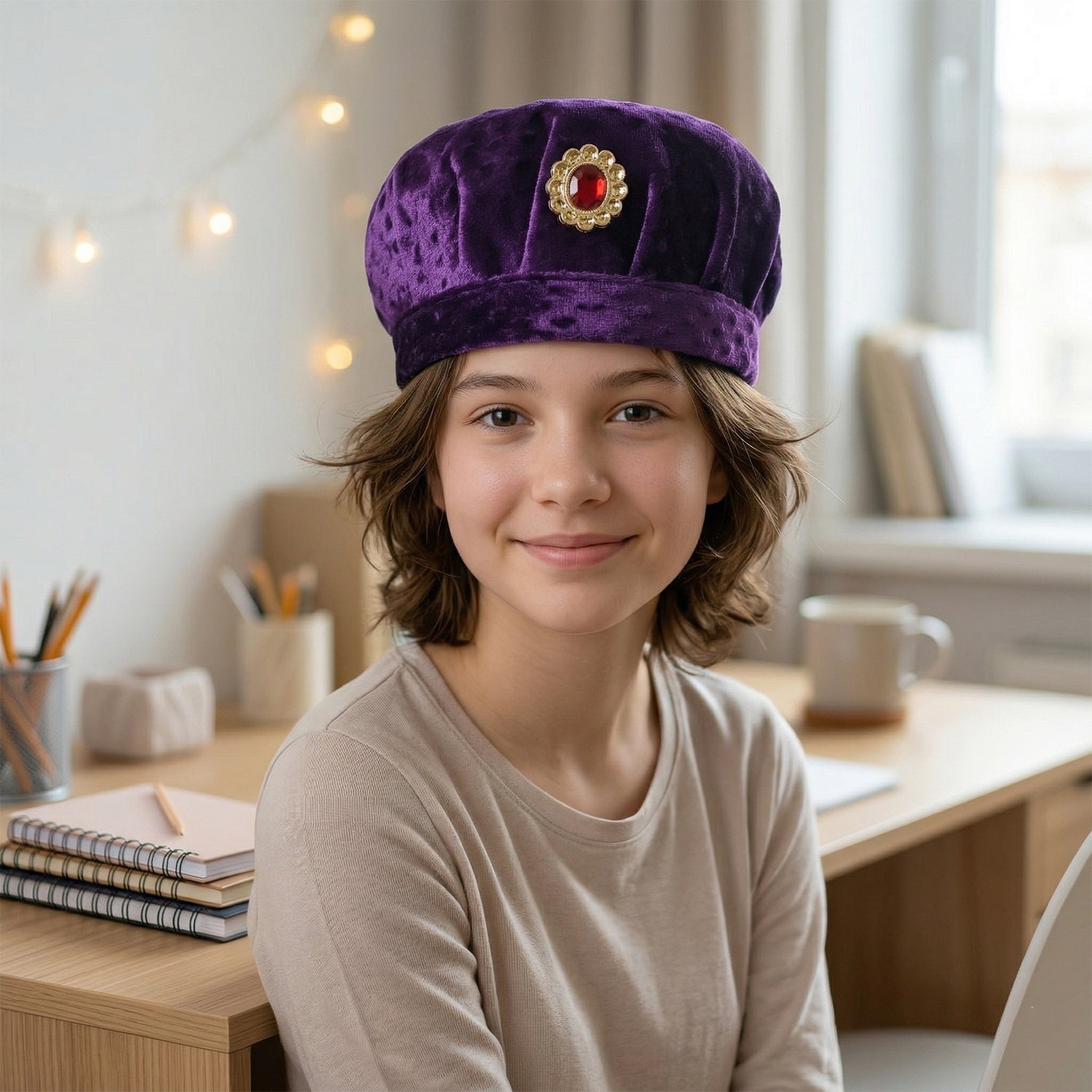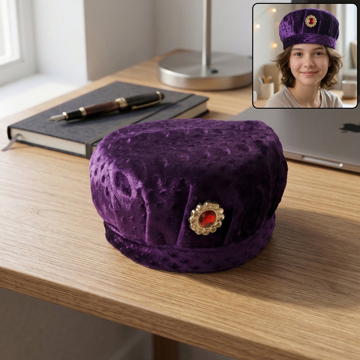 Royal Velvet Designer Cap for Kids & Boys 1 Pc – Premium Traditional Style Soft Velvet Cap with Decorative Stone Brooch Comfortable Festive Wear Ethnic Fashion Cap