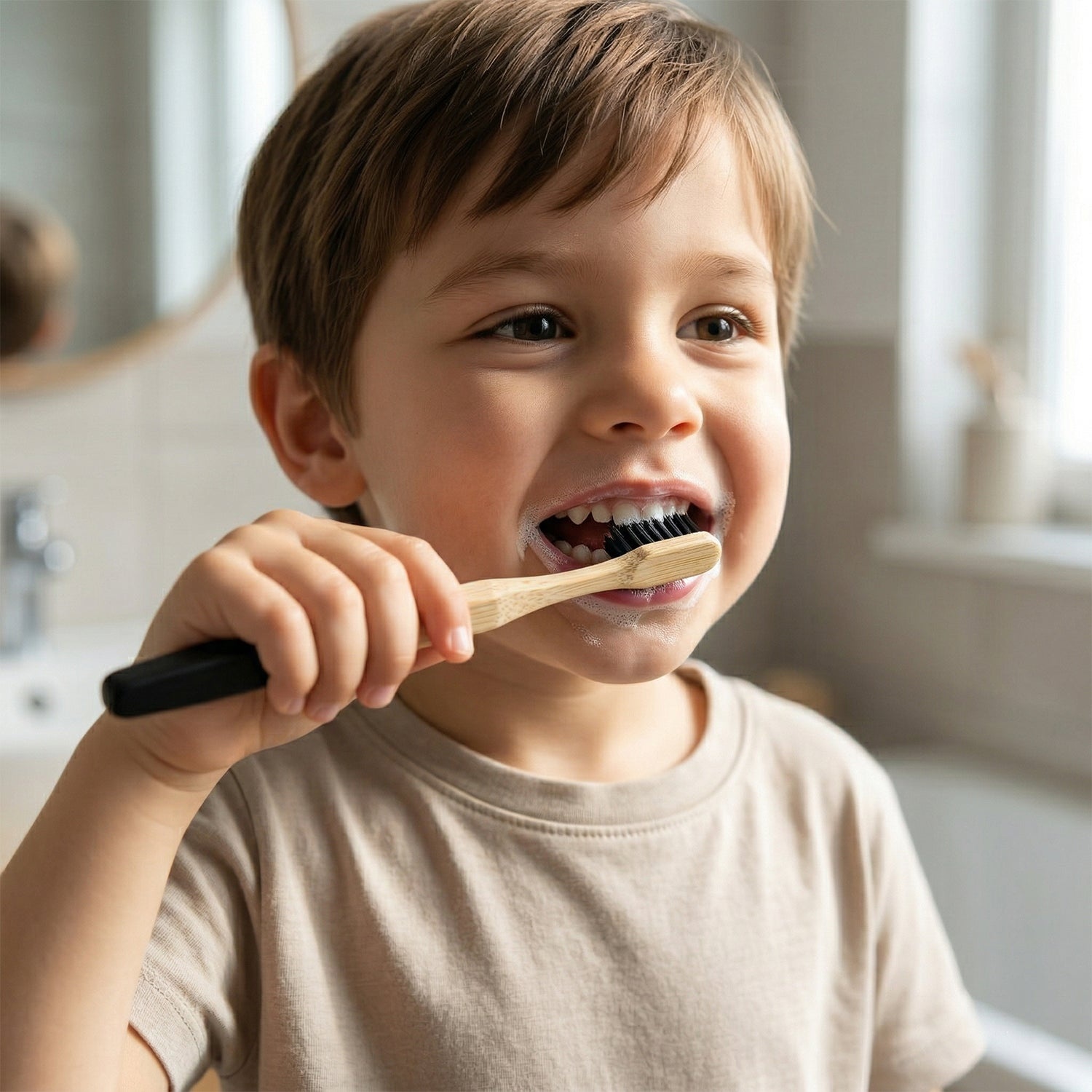 Natural Bamboo Toothbrush with Soft Charcoal Bristles (1 Pc)