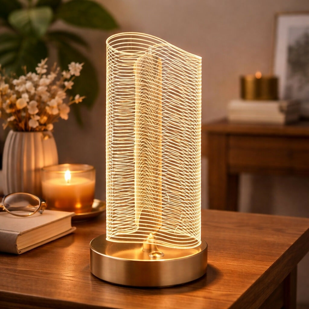 led table lamp, modern lamp, bedside lamp, decorative lamp, ambient light, bedroom lamp, living room decor, stylish lamp, warm light lamp, home decor lighting