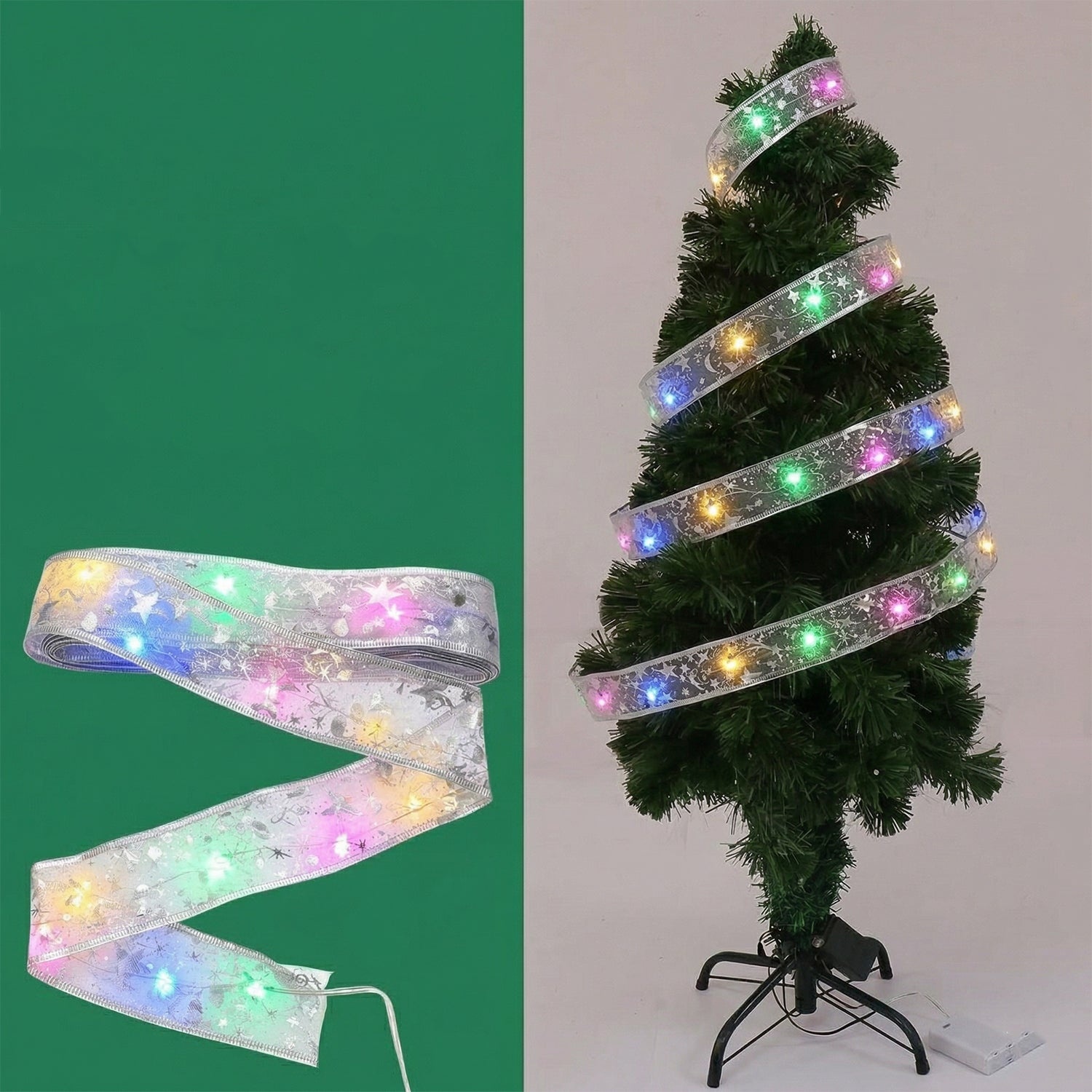 Enhance your festive decorations with this beautifully designed LED ribbon light strip that combines elegance with vibrant illumination. Featuring a flexible ribbon-style design embedded with multicolor LED lights, it wraps easily around trees, railings, walls, or furniture to create a warm and festive ambiance. The soft glowing lights add charm to any space, making it perfect for celebrations, parties, and seasonal decor. Its lightweight and flexible structure allows easy shaping and installation without hassle. A perfect decorative lighting solution to instantly uplift the mood of your home during special occasions.