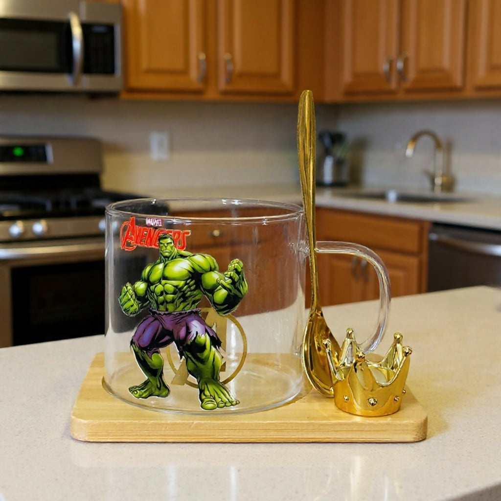 glass mug set, coffee mug with tray, transparent tea cup, wooden tray mug set, mug with spoon set, coffee serving set, stylish glass cup, gift mug set, tea coffee cup set, kitchen drinkware set
