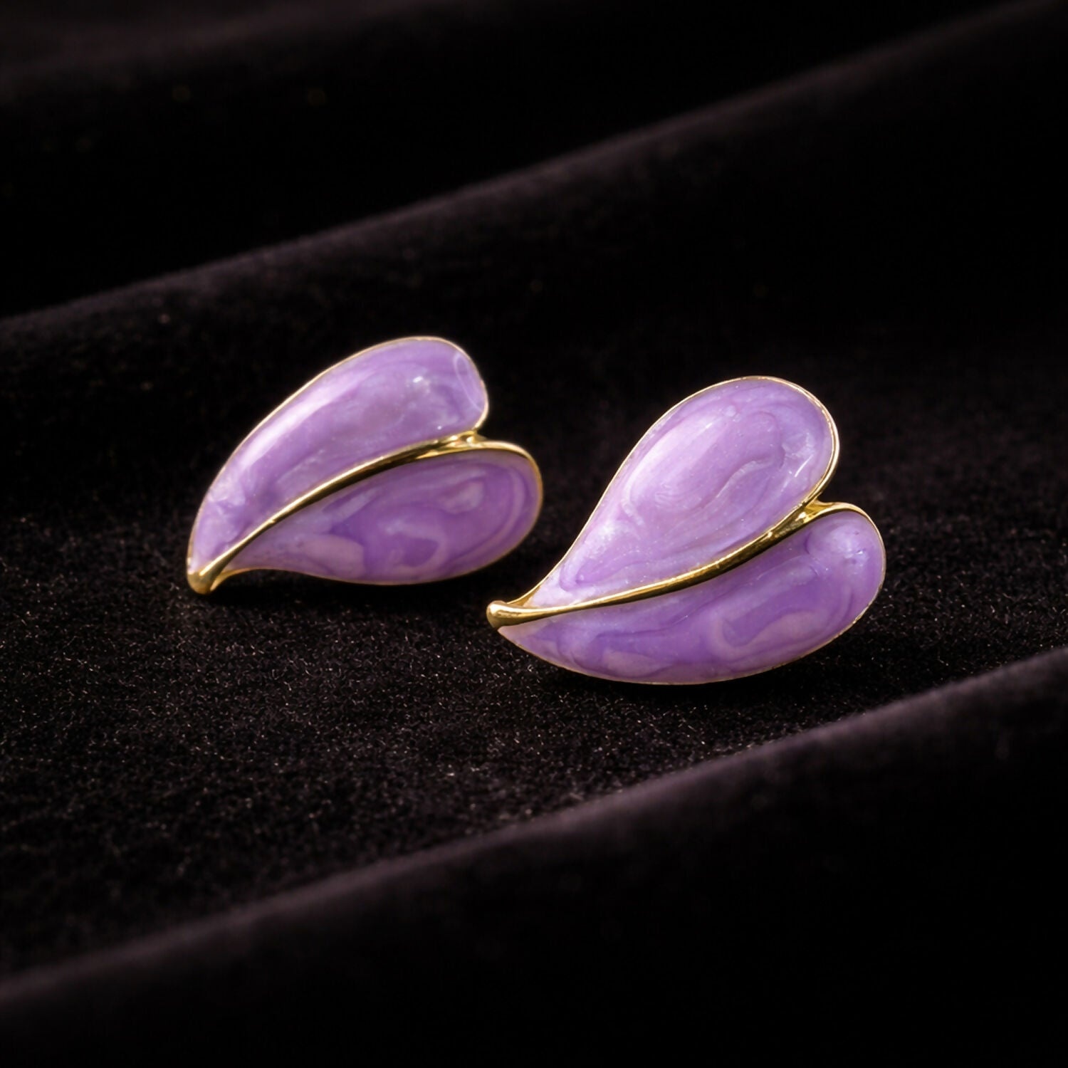 Elegant Purple Glossy Leaf Design Stud Earrings for Women with Gold Outline