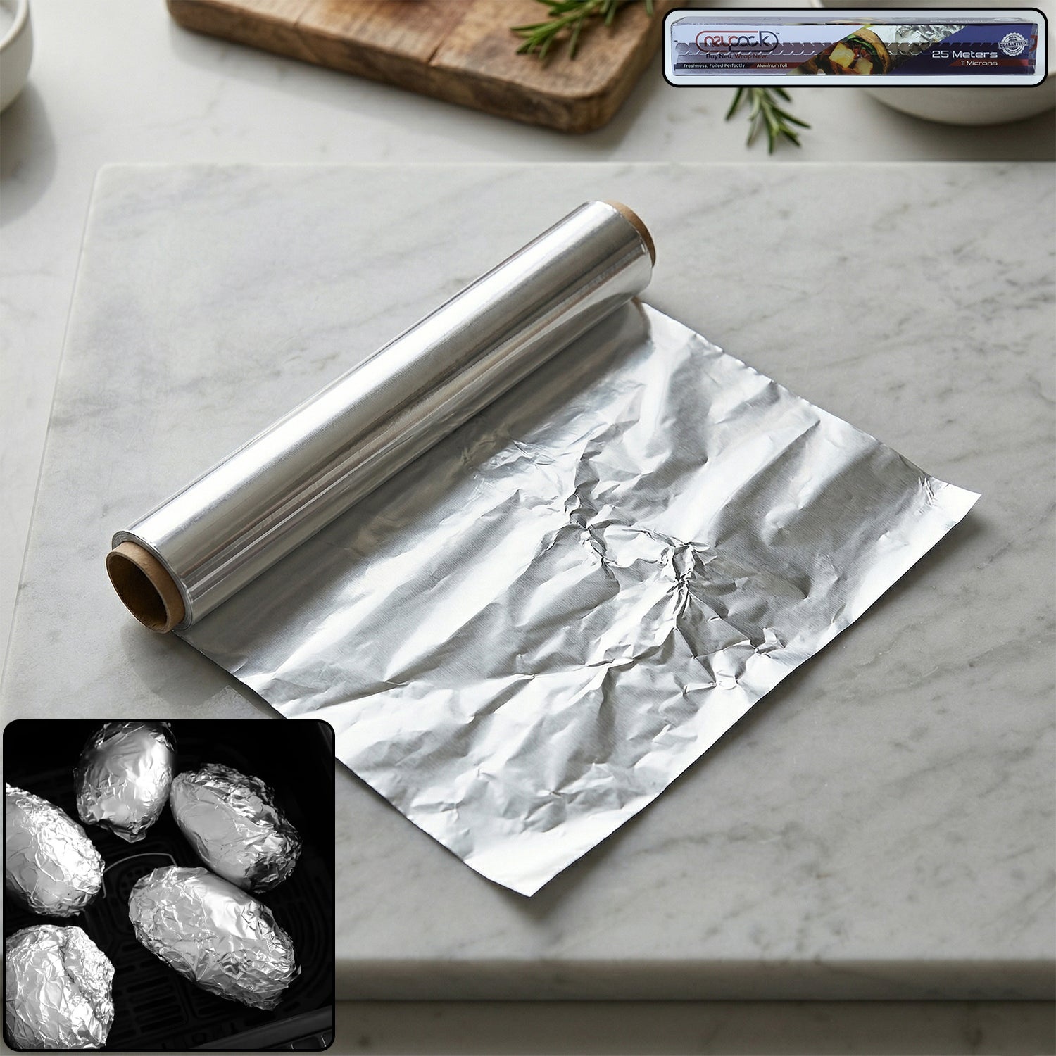 Enhance your kitchen efficiency with this premium aluminium foil paper roll designed for versatile everyday use. Ideal for wrapping, storing, and cooking, this foil helps retain heat, moisture, and freshness, ensuring your food stays delicious for longer. Its strong and flexible structure allows easy handling without tearing, making it perfect for baking, grilling, and packing meals. Whether used in home kitchens or professional setups, it offers a hygienic solution for food storage and preparation. A reliable and essential addition to any kitchen setup.