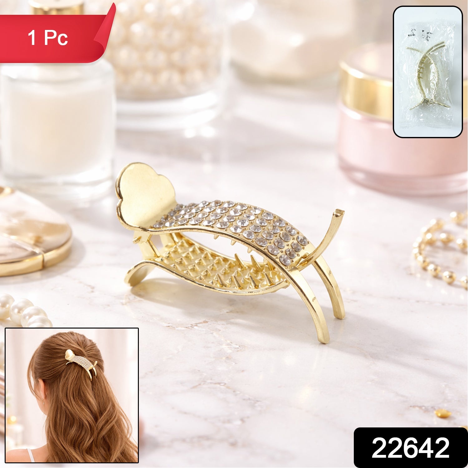 Premium Crystal Studded Hair Claw Clip for Women 1 Pc – Elegant Metallic Finish Strong Grip Designer Hair Clutcher Stylish Party Wear Hair Accessory for Daily & Occasion Use