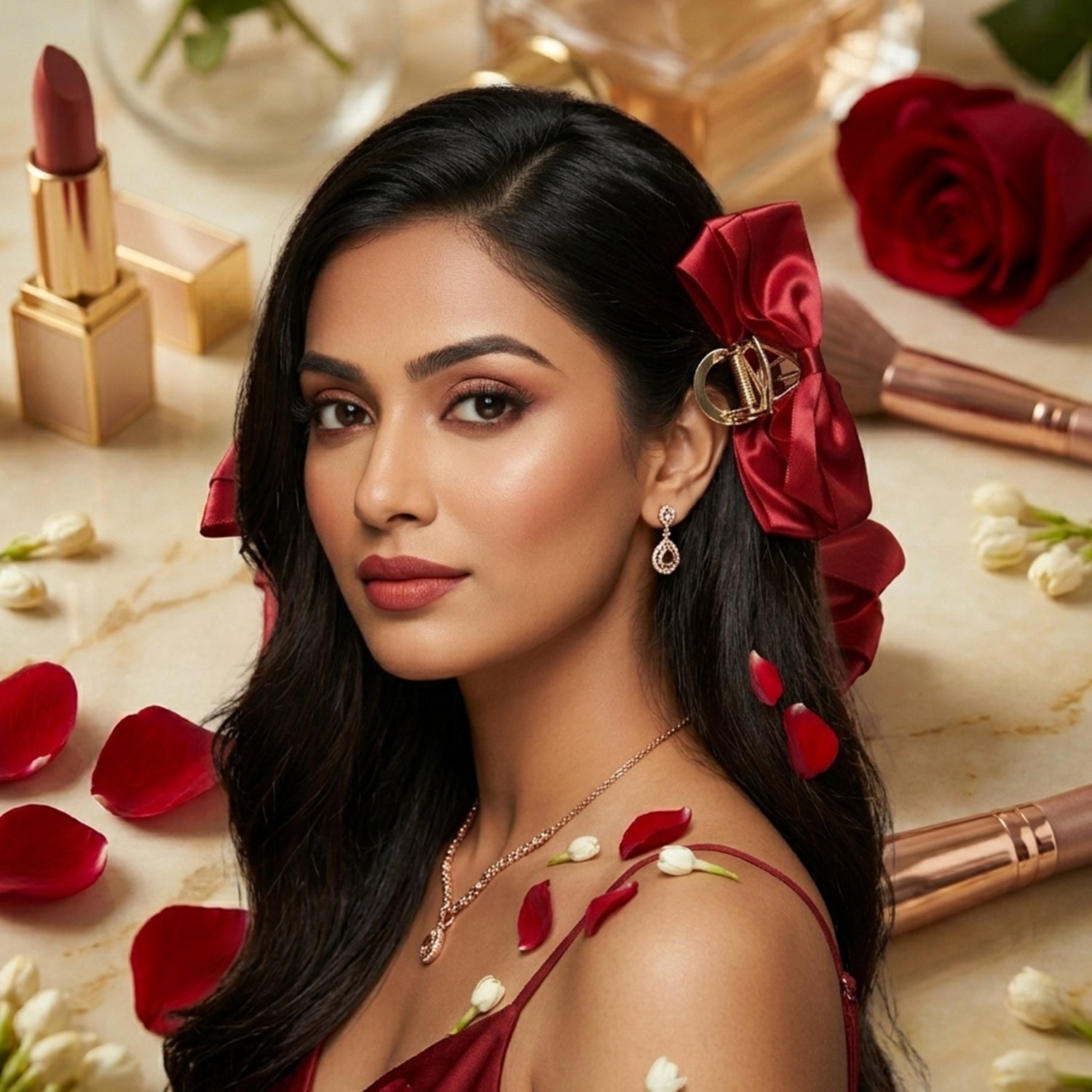 Elegant Satin Bow Hair Claw Clip for Women 1 Pc – Stylish Ribbon Design Strong Grip Hair Clutcher for Party Wear Bridal Hairstyles and Daily Fashion Hair Accessory