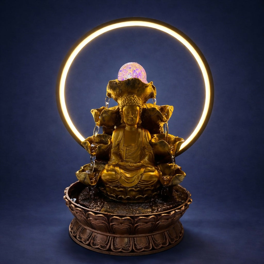 Buddha Water Fountain with LED Ring Light Decorative Tabletop