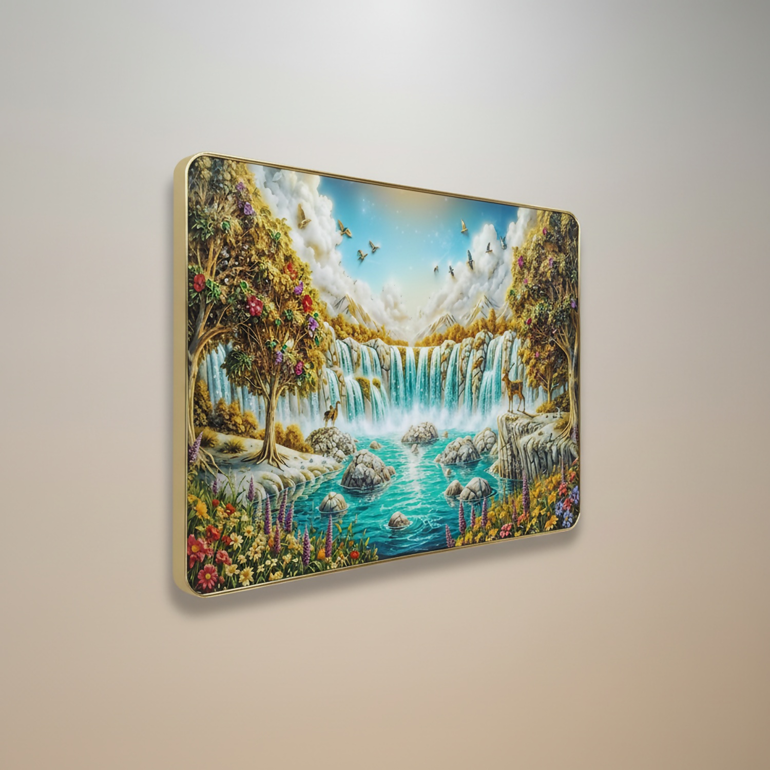 Premium 3D Waterfall Wall Décor with Golden Frame