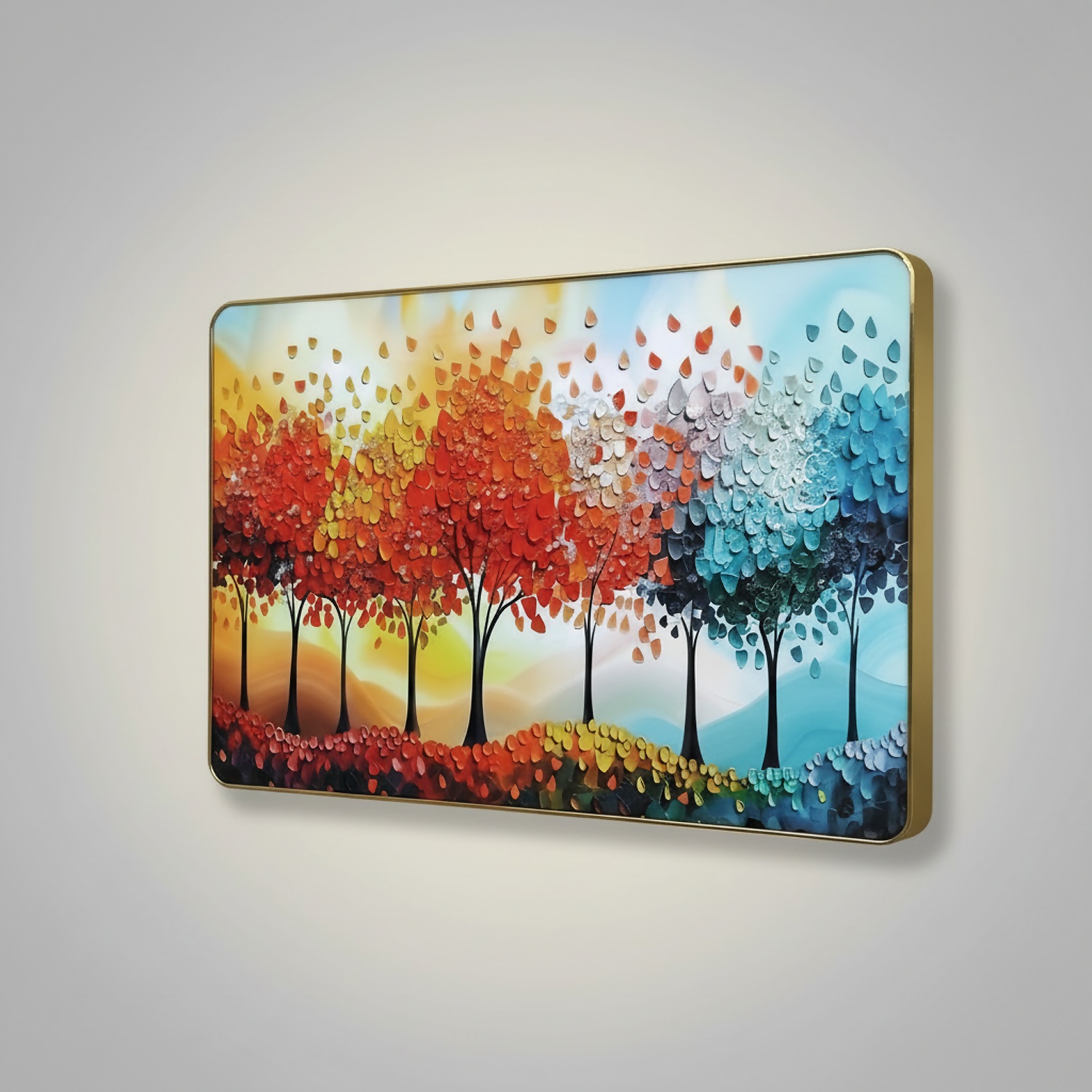 Add a vibrant and artistic touch to your home with this premium 3D tree wall art panel, designed to bring color, depth, and elegance into any space. Featuring a stunning row of abstract trees in a beautiful gradient of warm reds, oranges, and cool blues, this artwork symbolizes harmony, balance, and nature’s beauty.