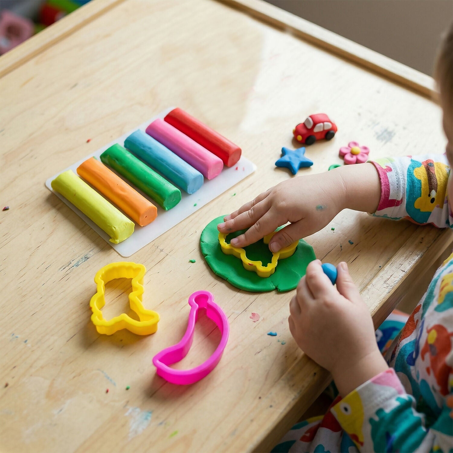 Make playtime fun and creative with the NARA 6 Color Modelling Clay Set, specially designed for kids to explore their imagination. This vibrant clay kit comes with multiple bright colors and easy-to-use shape cutters, allowing children to create fun shapes, figures, and designs effortlessly. The soft and smooth texture makes it easy to mold, roll, and press, helping develop fine motor skills and hand-eye coordination. Perfect for making animals, fruits, and creative models, it keeps kids engaged in screen-free, interactive play. Safe and non-toxic, this clay set is ideal for home, school, and activity time, making learning through creativity enjoyable and exciting.