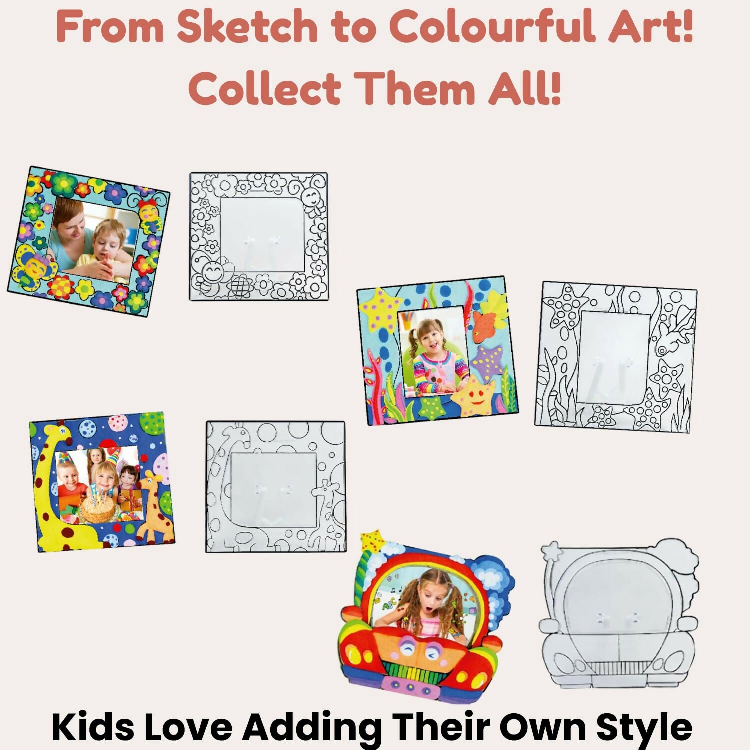 Make creativity more fun and colorful with the NARA Fancy Frame Foam Clay Art Kit, designed for kids to create their own unique photo frames. This engaging DIY kit includes soft foam clay in vibrant mix colors that can be easily pressed onto the frame design to bring it to life. The simple step-by-step process makes it easy for children to pick colors, apply clay, and create beautiful decorative frames. Perfect for school projects, weekend activities, and creative playtime, it helps develop imagination, focus, and fine motor skills. Safe and mess-free, this kit allows kids to enjoy hands-on crafting while creating personalized keepsakes they can proudly display or gift.