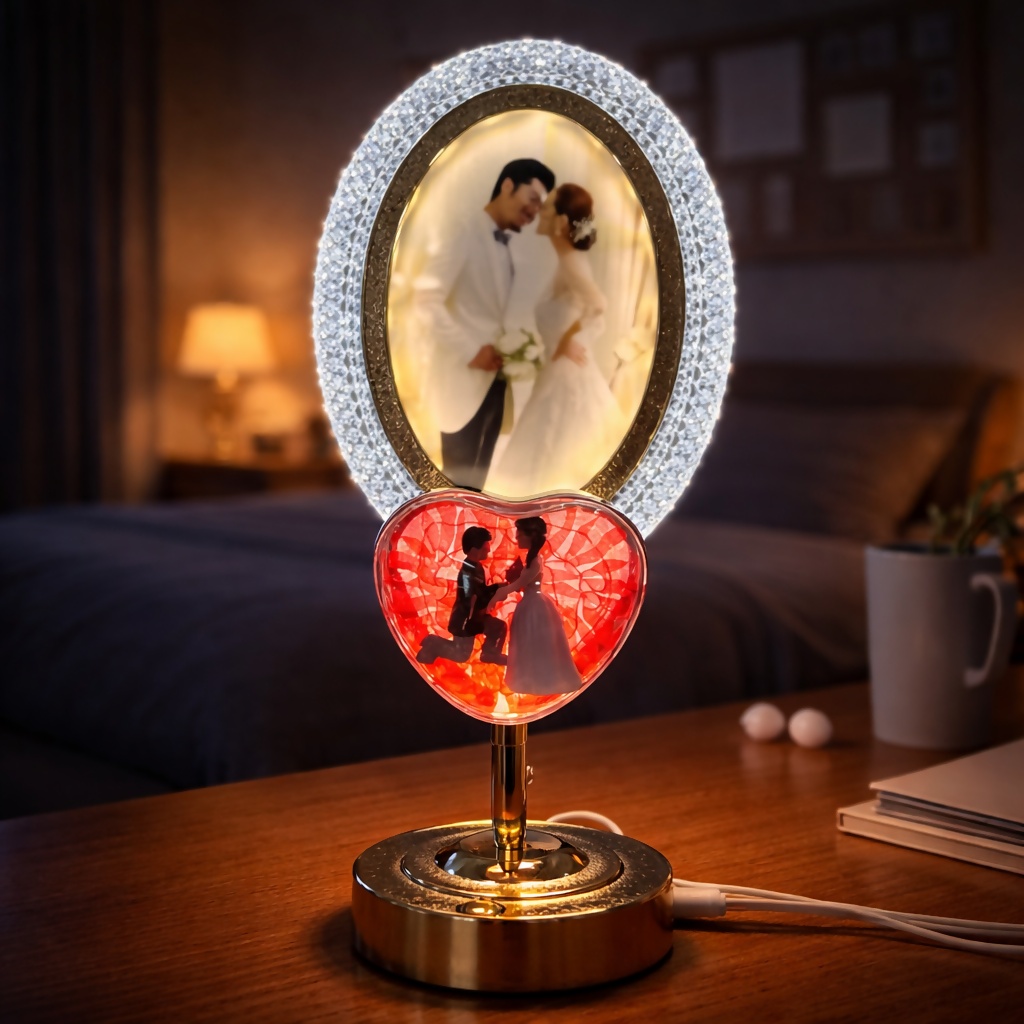 led photo frame lamp, romantic couple lamp, bedroom night lamp, decorative table lamp, couple gift lamp, led desk light, heart shape lamp, ambient light decor, gift for couples, anniversary gift lamp, wedding gift lamp, usb powered lamp, night light decor, home decor lamp, aesthetic desk lamp
