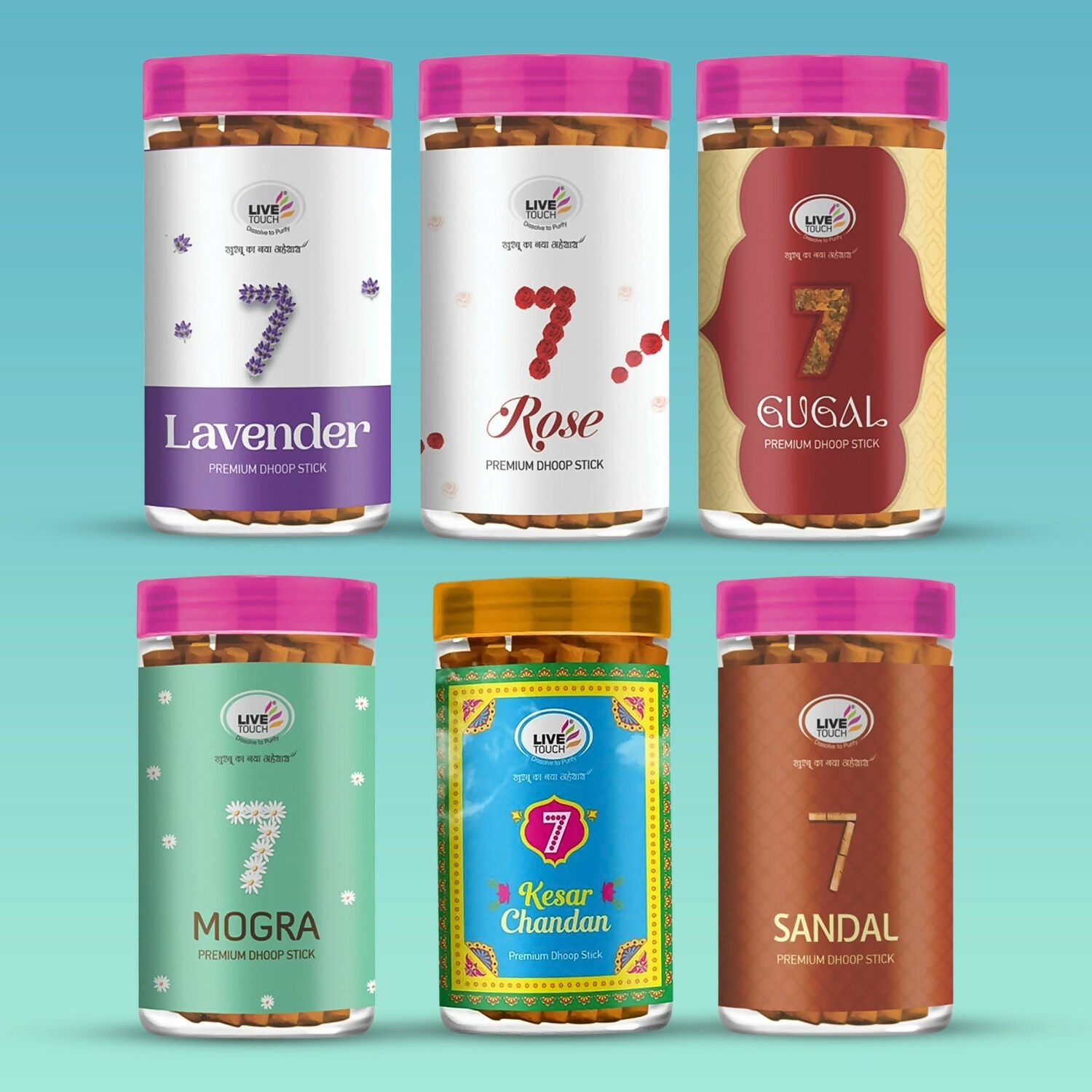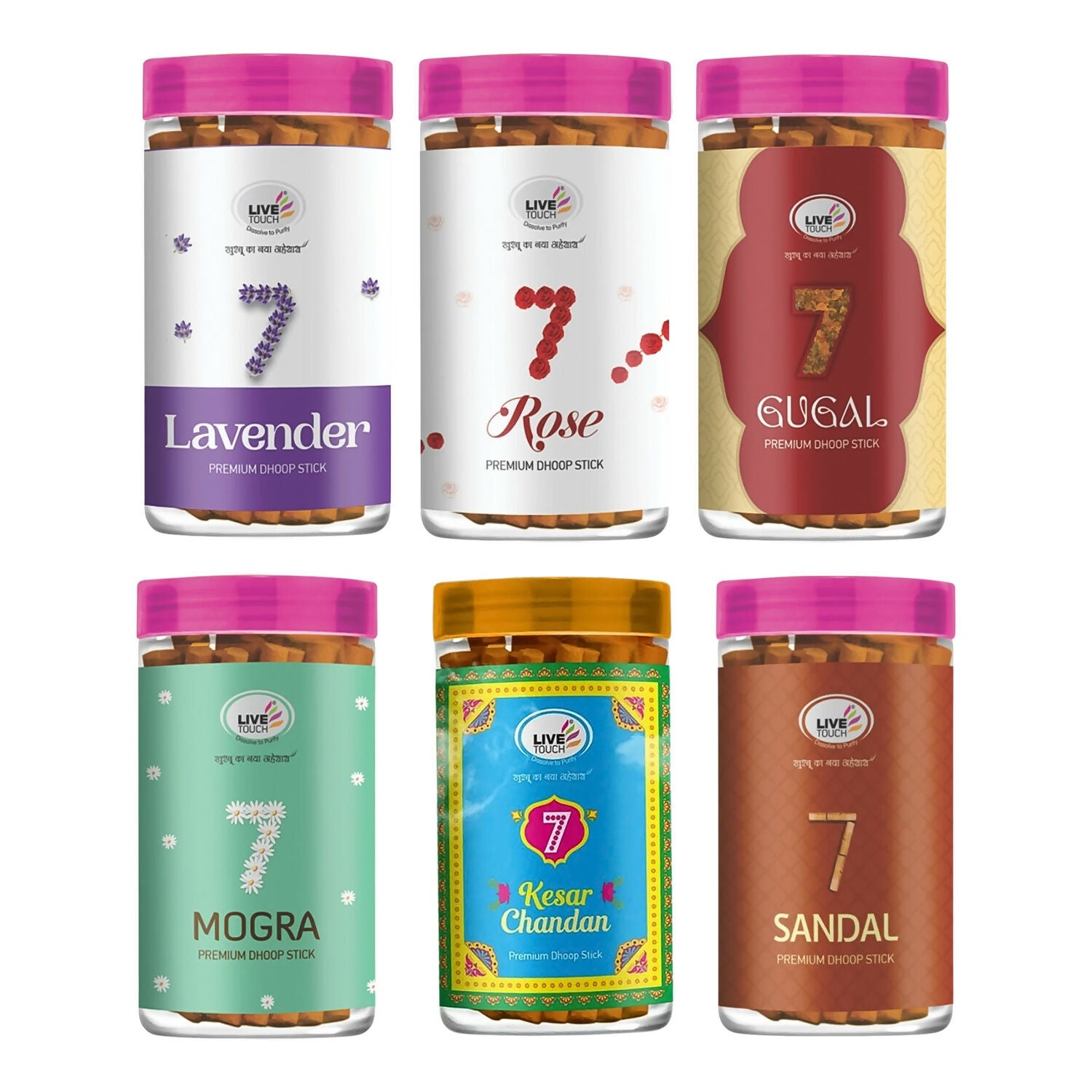 Live Touch Premium Dhoop Stick Combo – Pack of 6 Fragrances (100Gm/Each Jar)