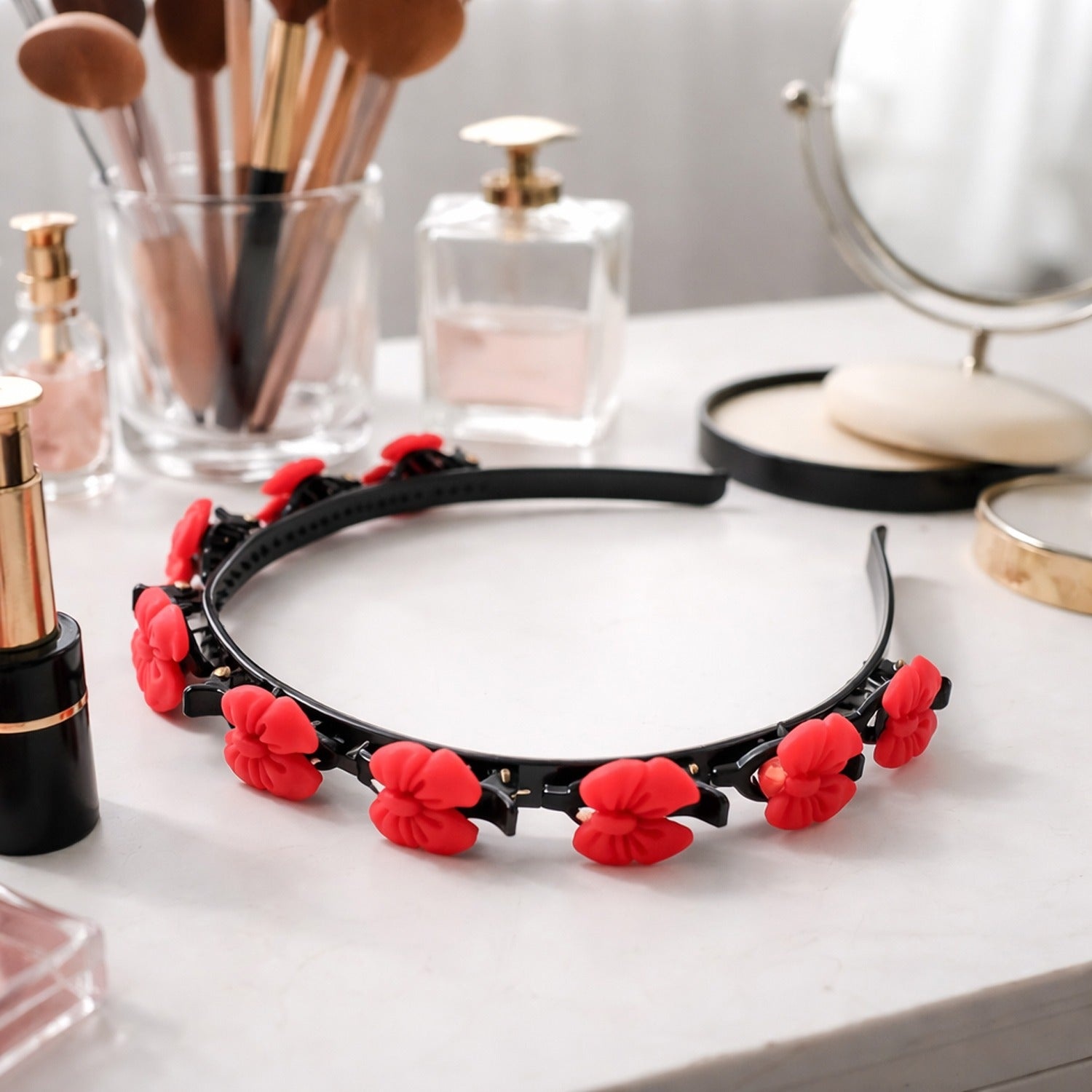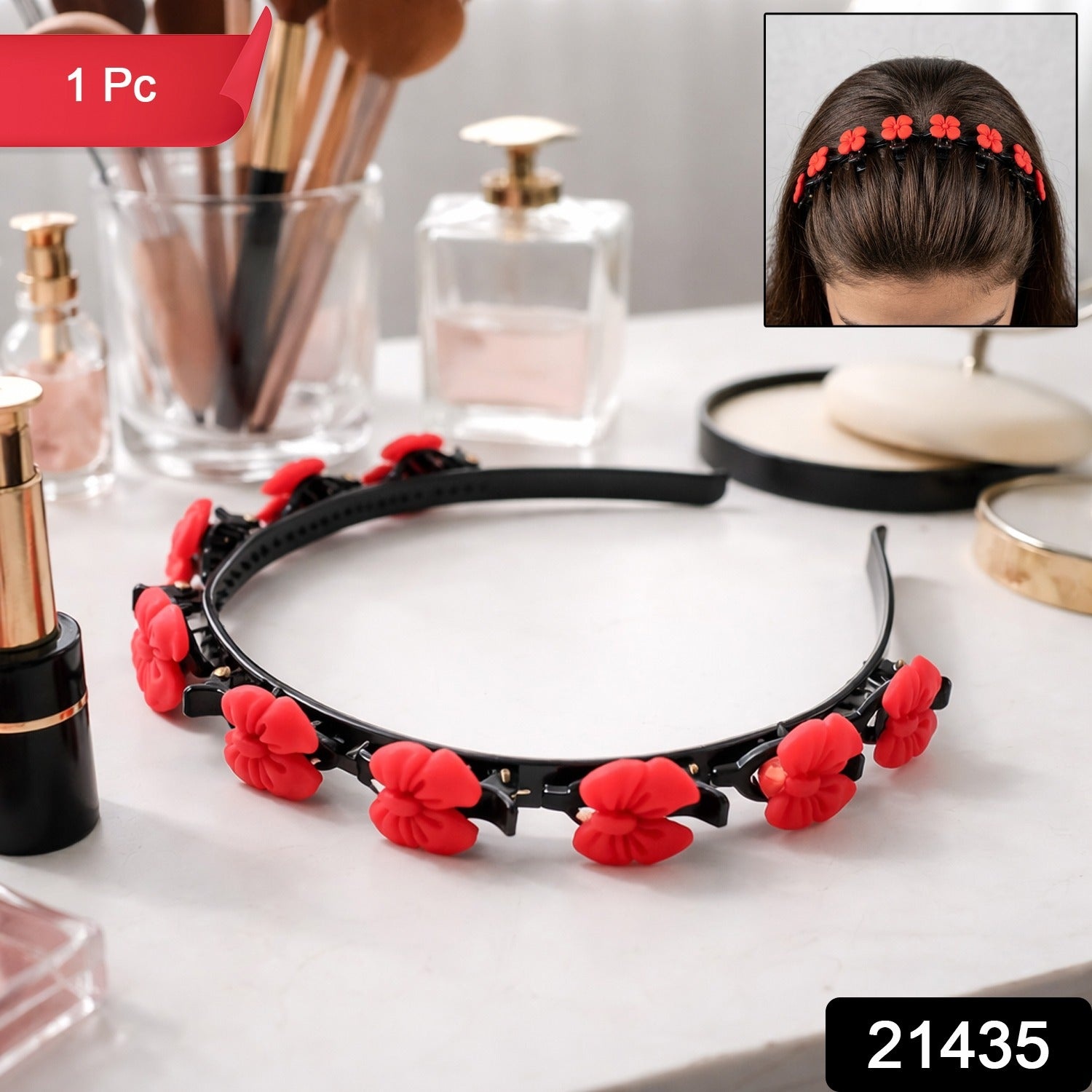Loose strands and slipping hair accessories can disrupt your look throughout the day. The Decorative Floral Headband with Built-in Mini Claw Clips ensures a firm and stylish hold. This floral headband with clips combines beauty with functionality, acting as a claw clip hair band for better grip. It’s a decorative hair band with clips that keeps your hairstyle intact.