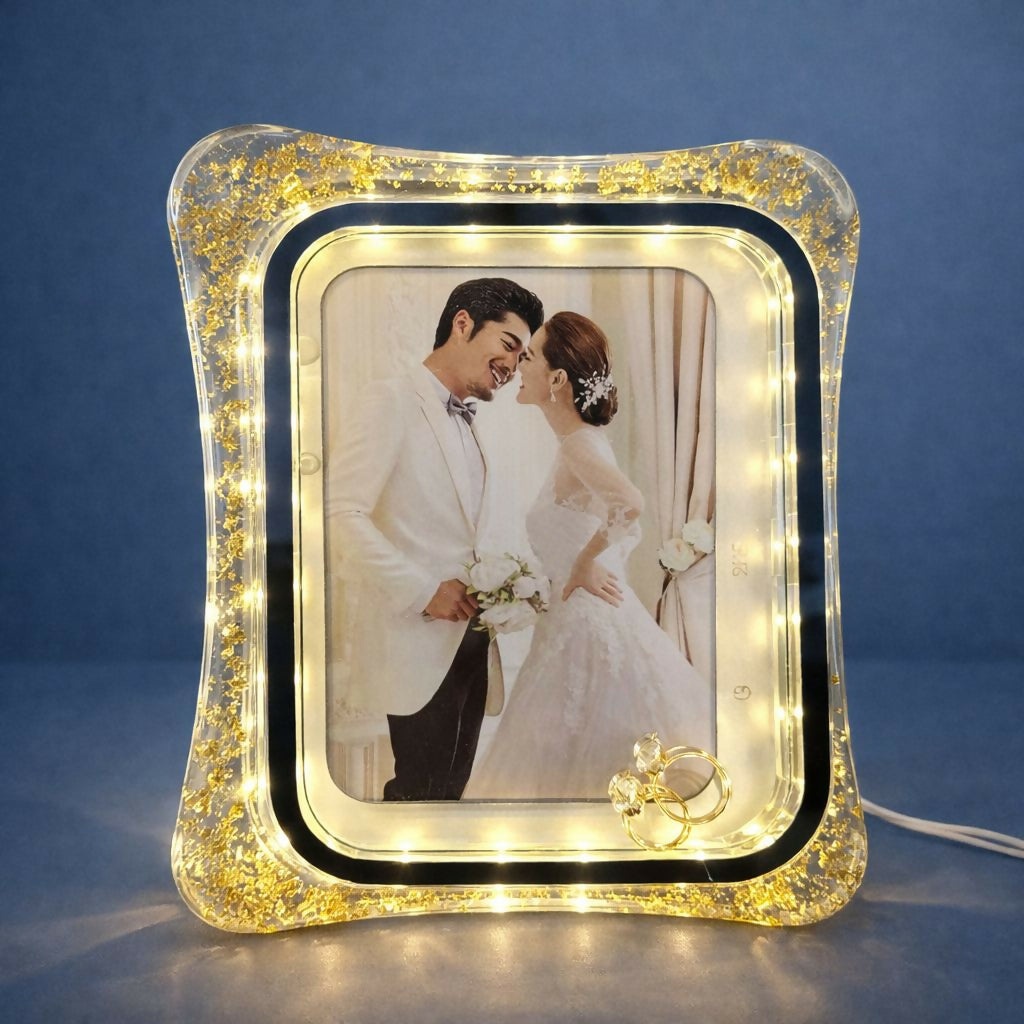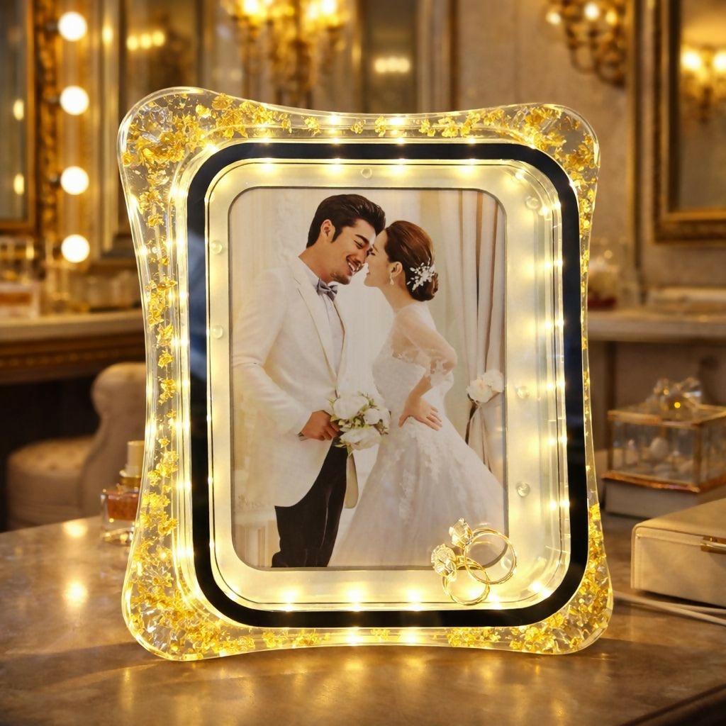 led photo frame, couple photo frame, light photo frame, decorative frame, wedding gift, anniversary gift, romantic decor, crystal frame, glowing photo frame, home decor item, table decor, gift for couple, memory frame, led frame decor, premium photo frame