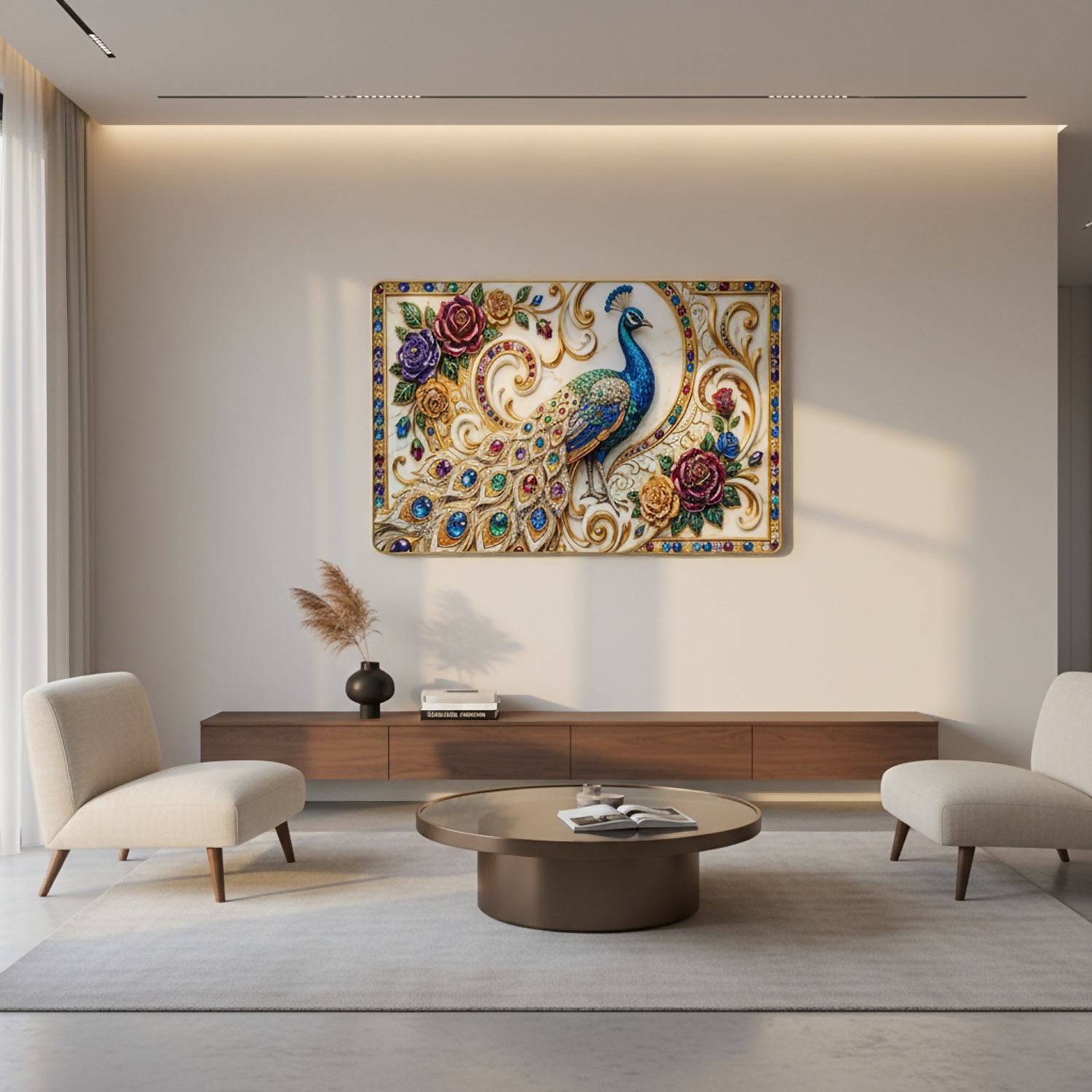 Luxury Peacock Wall Art Frame with Floral Gem Design Home Decor