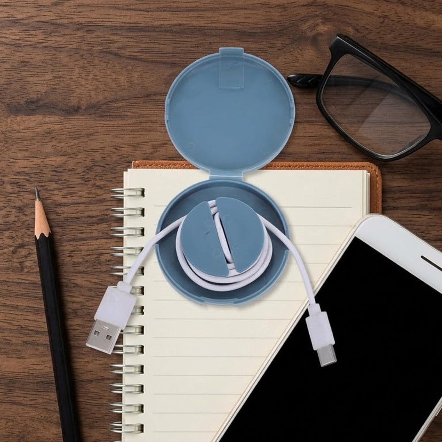 Compact Plastic Cable Organizer Case 1 Pc – Portable Wire Holder Box for Earphones, Chargers, and USB Cables – Travel-Friendly Cable Management Solution