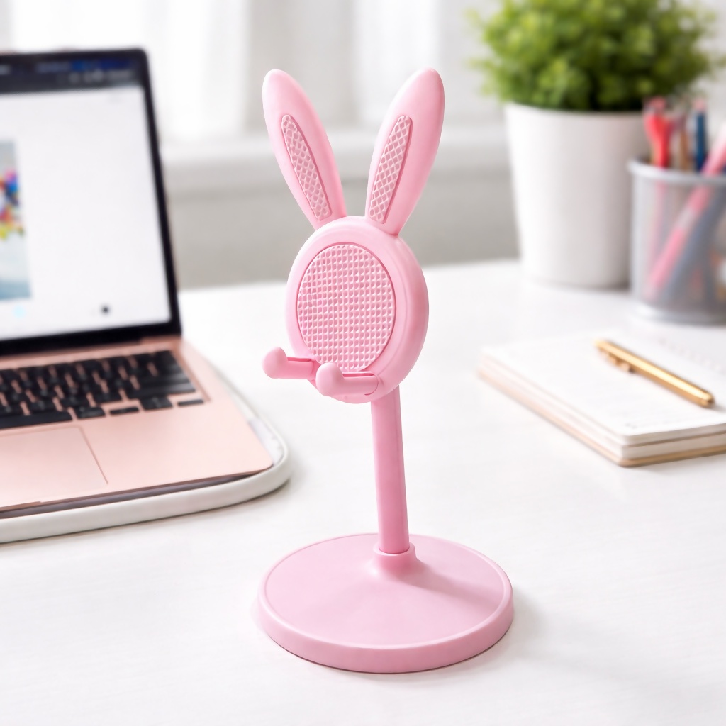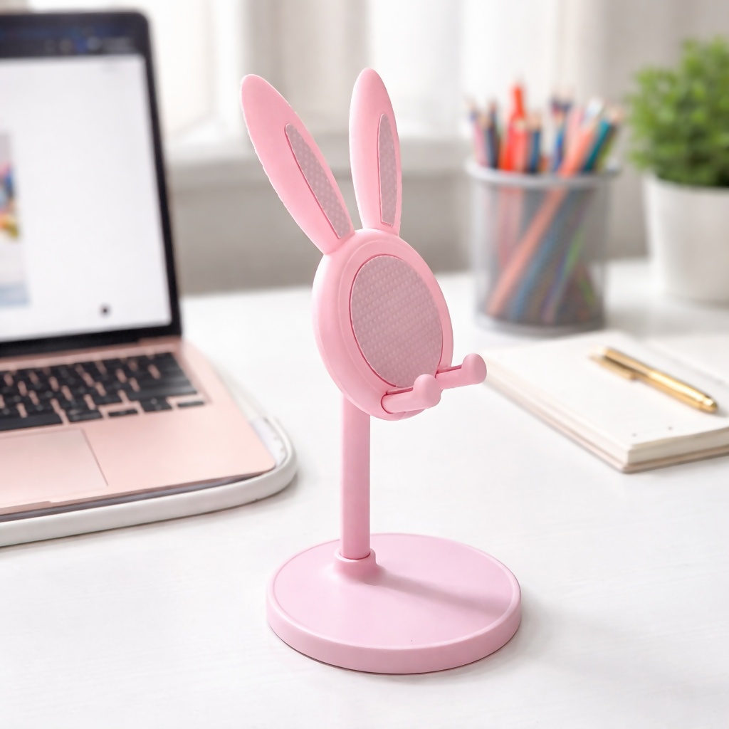 Add a cute and practical touch to your workspace with this bunny ear mobile phone stand. Designed with a stable base and adjustable viewing angle, it securely holds your smartphone while you watch videos, attend calls, or follow recipes. The compact and lightweight design makes it perfect for desks, study tables, bedside tables, or office workspaces. The playful bunny ear design also adds a decorative element to your setup while keeping your phone conveniently accessible.